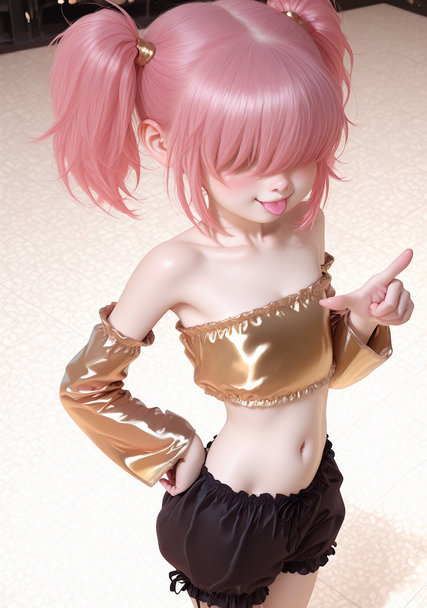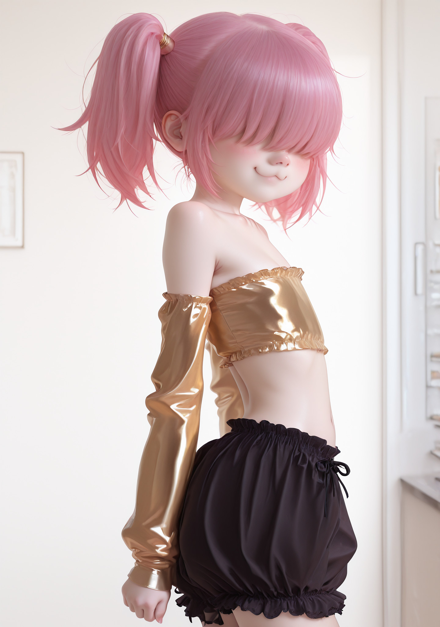 Requesting a silver haired gold eyed loli with a bobcut hairstyle and Japanese aesthetics bullying a below average uncircumcised penis