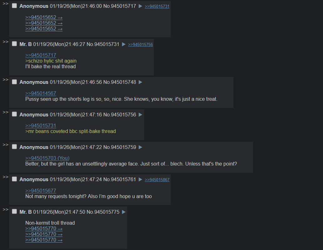 kermit is posting goblin scat in the other thread