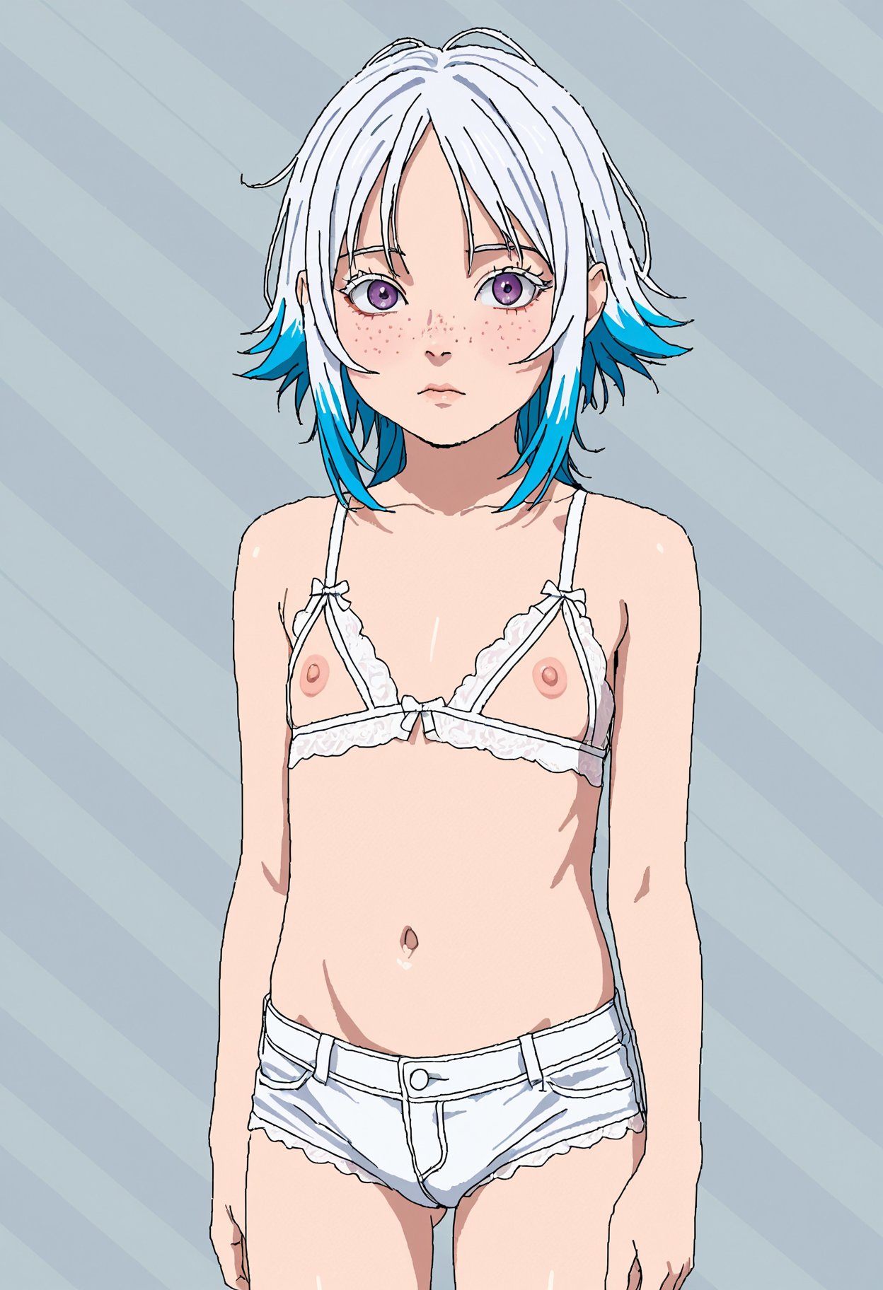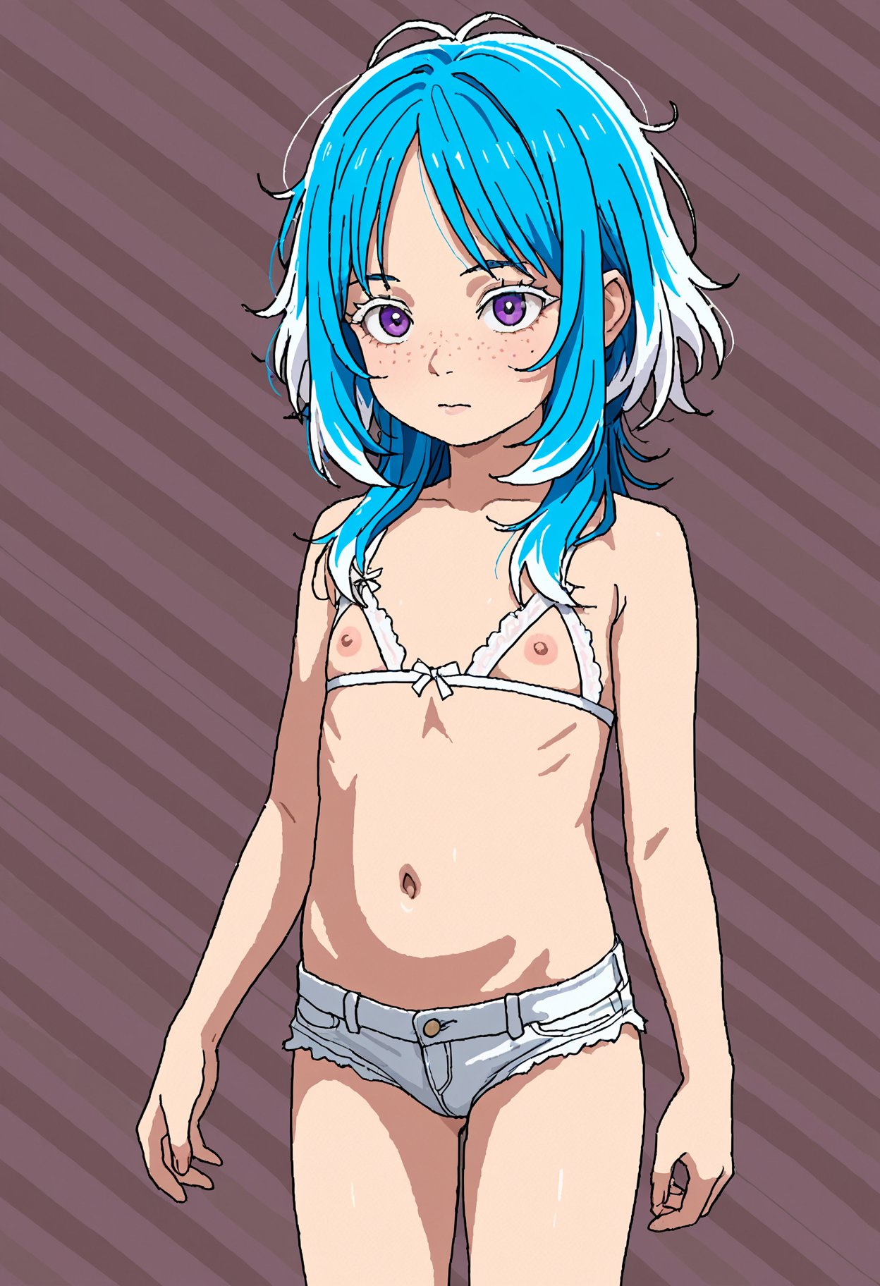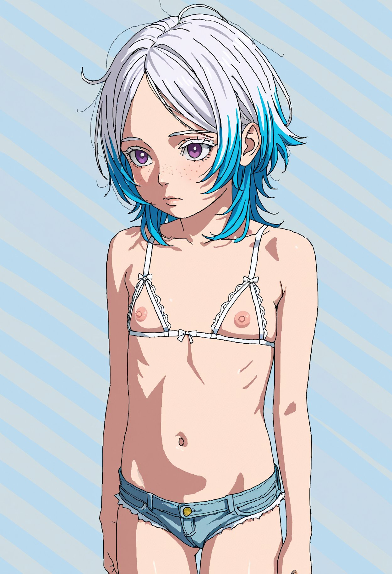 >>945158727masterpiece, best quality, anime coloring, absurd, very aesthetic, absurdres, pastel palette,1girl, pretty eyes, tiny breasts, nipples, pigtails, blonde,analog style, vintage, depth of field, faded color, rakugakingu , long hair, :|,one leg up, barefoot, presenting foot, spreading,Feet, feet focus, on the back, anal_fingering,