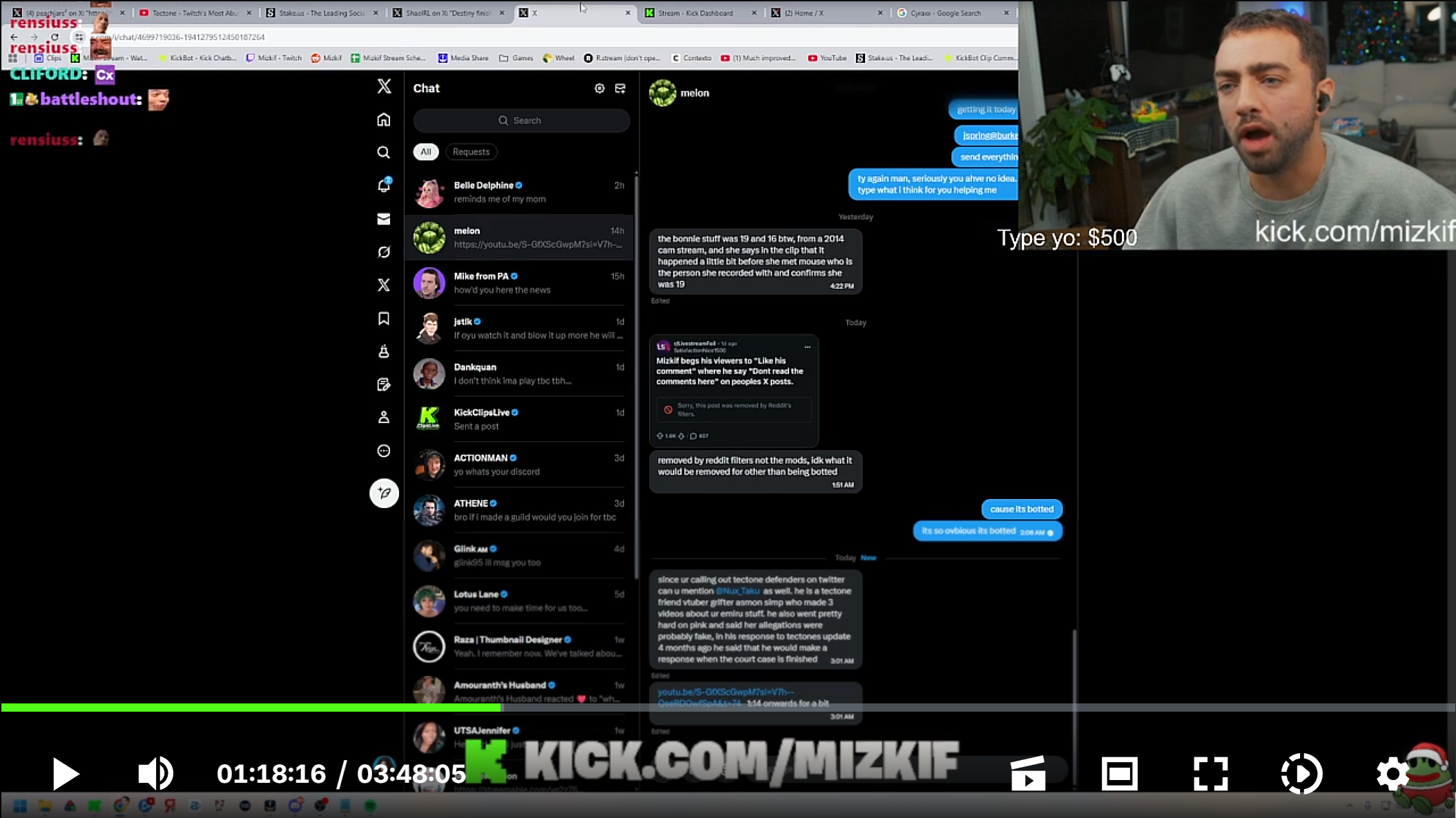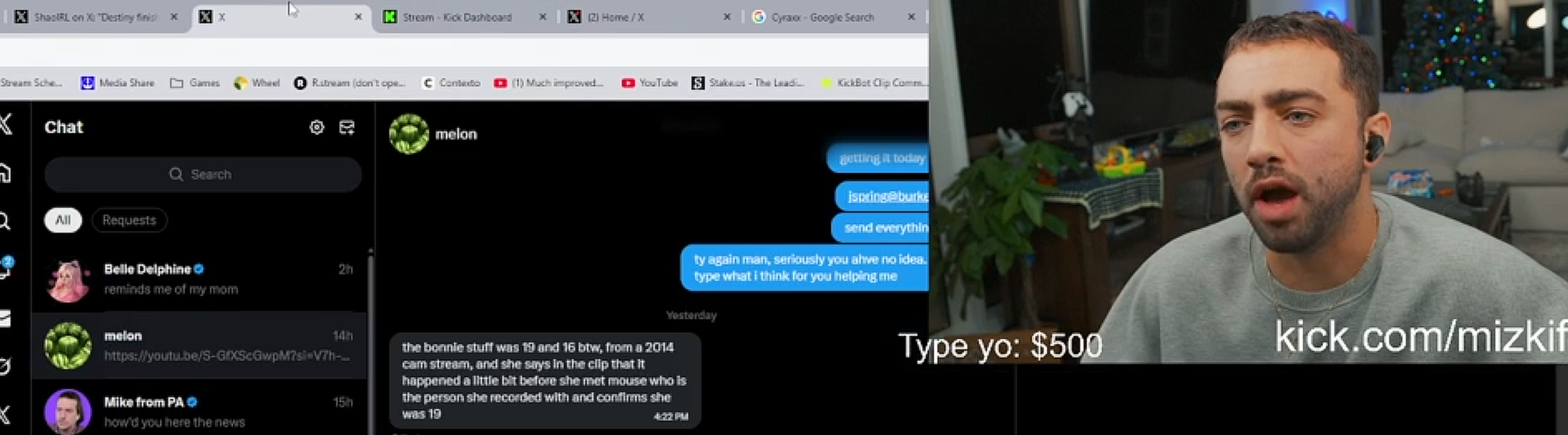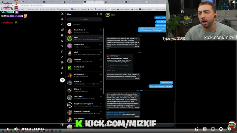 >>945221388Mizkif was caught in his latest stream once again messaging and talking to a 4chan schizo by the name Melon KEKAlso,Miz is talking to Belle Delphine...interesting