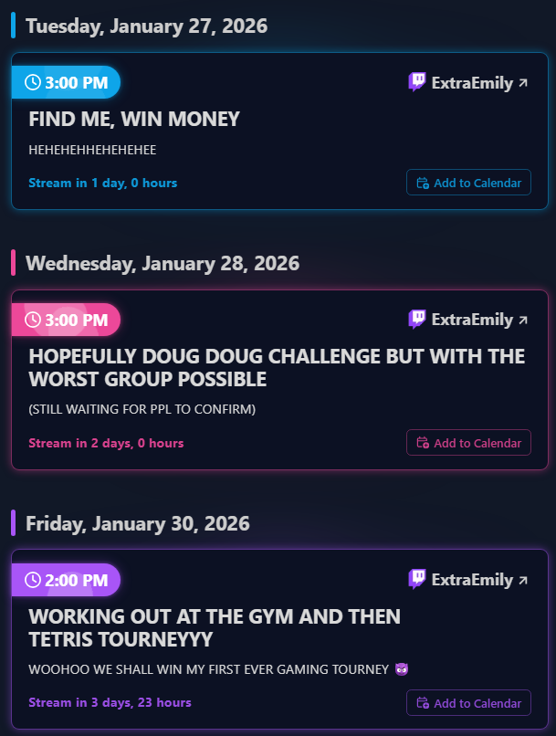 >>945284773yes, Julia has gone live a few times now after Katchii has already started and is like 2 hours in. Katchii (2 or less streams a week) and Nick(trying for 4 streams a week) having the hard end at 4 hours I dont think will be too bad for Arther and Julia.