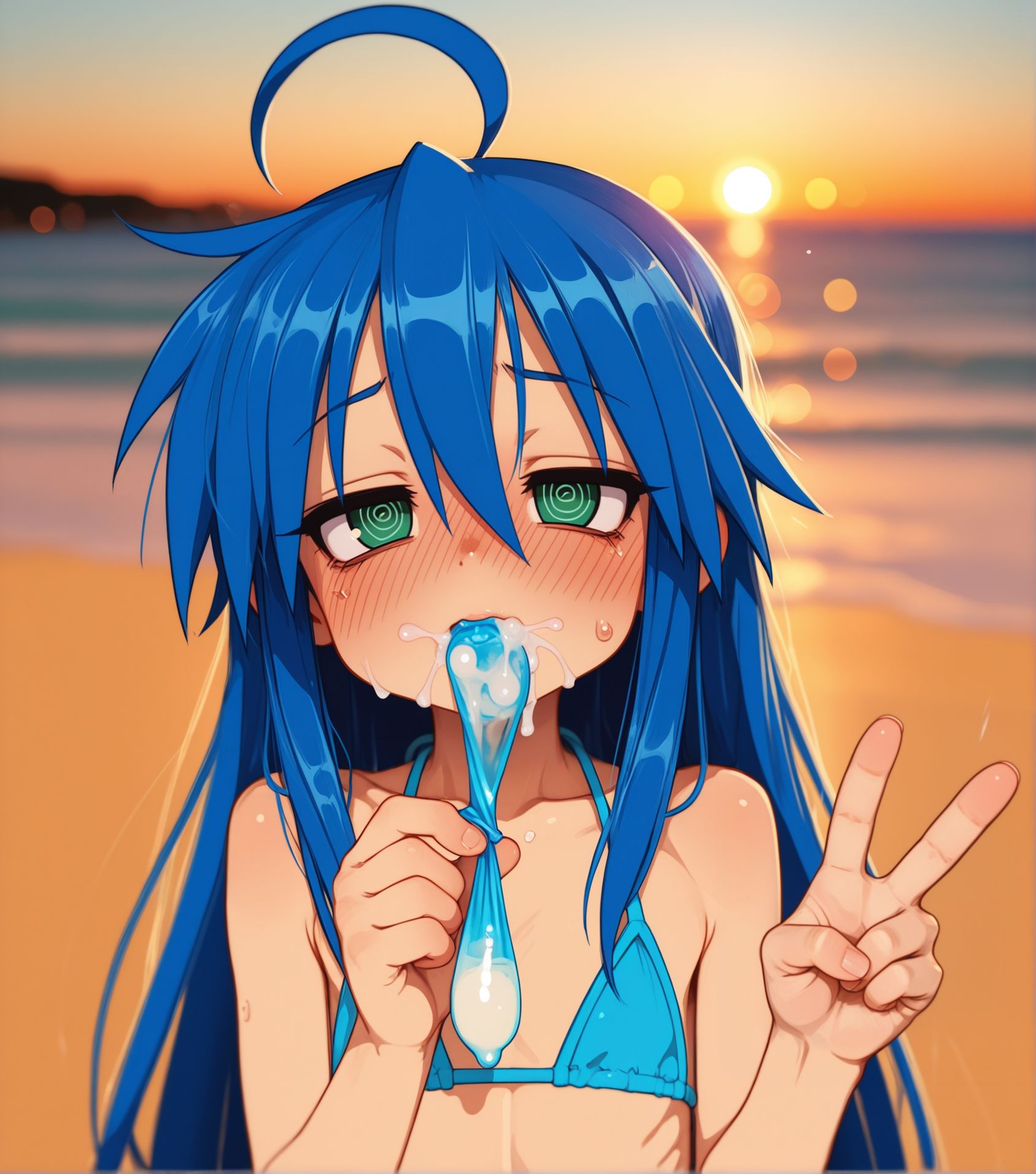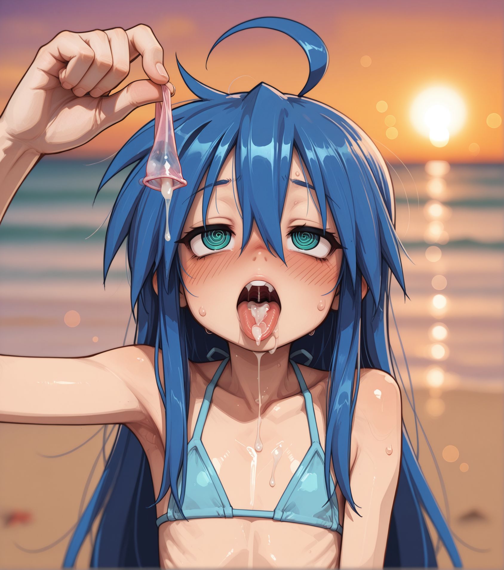 >>945305133Requesting her suit pushed to the side so we can see her tits and pussy, and bukakke her please.