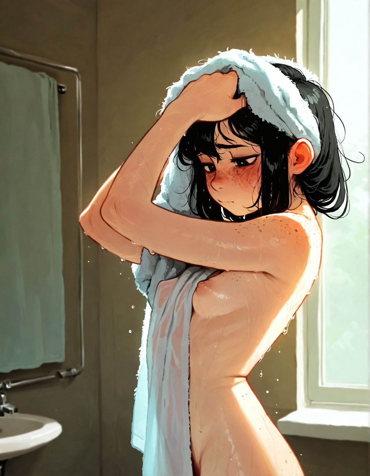 >>945305473>>945305480Time to clean herself up after pleasuring many men