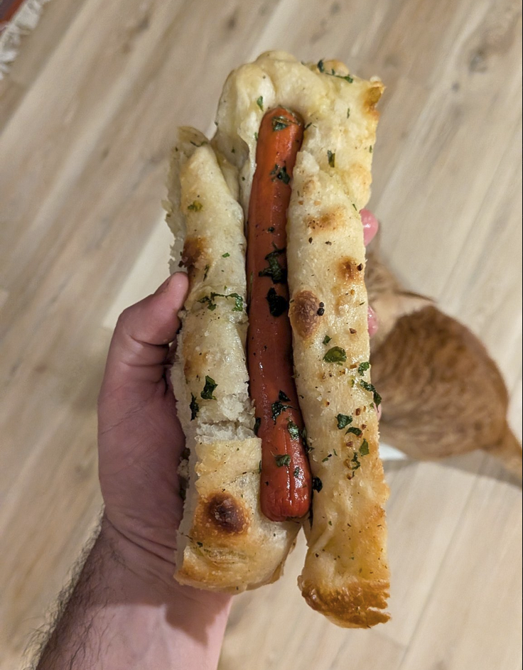 garlic parsley focaccia hot dogs