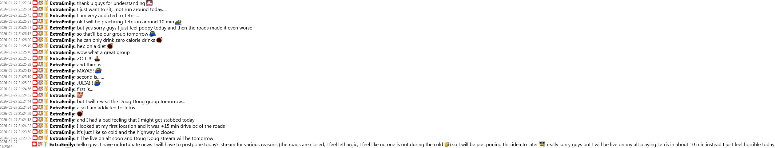 Well they moved my execution up till tomorrow. That's the price I pay for mocking Emiru
