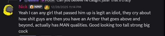Not sure if this is the nick/nora faggot or an actual simp crashing out over mande lmao