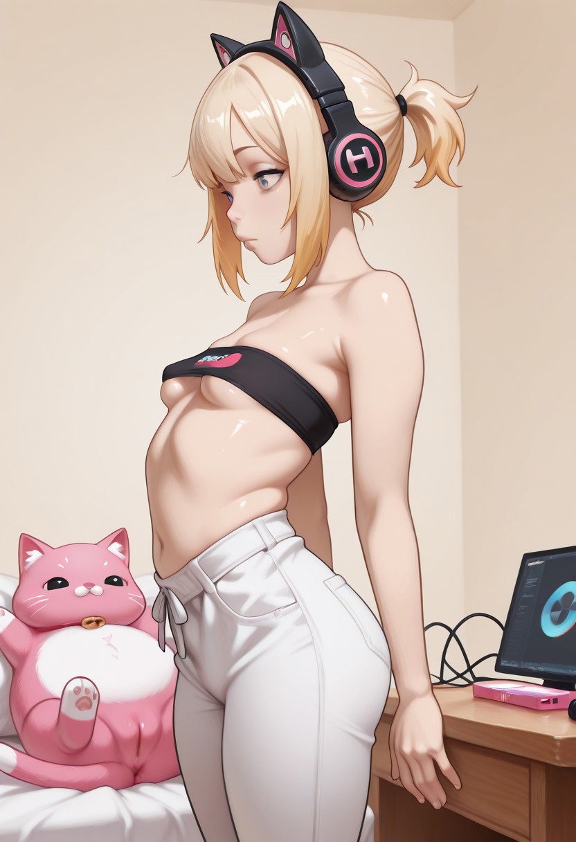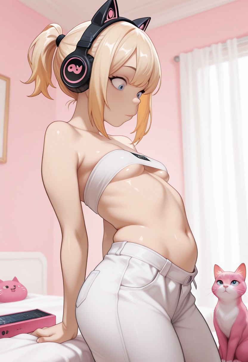 >cat headphones, pink cat headphones, pussy peek, streamer girl, exhibitionist >puts a vagina in a fat pink catHeh
