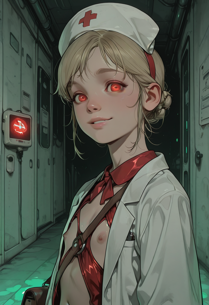 >>945629160Heart tape on her nipples with a nervous expression?