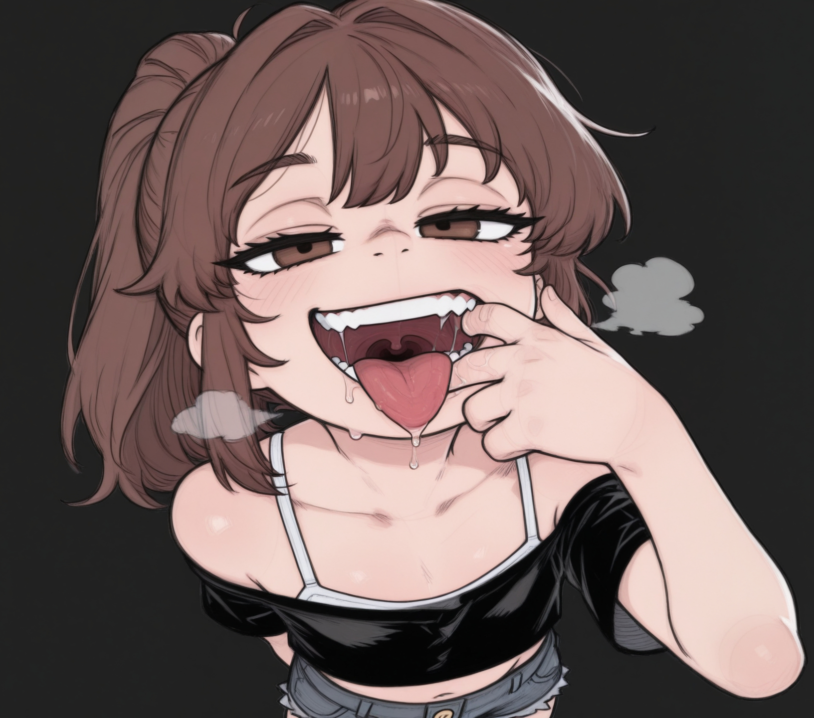 >>945657583Could you gen her in a squat showing her armpits and big tits while she lets a creampie flow out of her pussy please