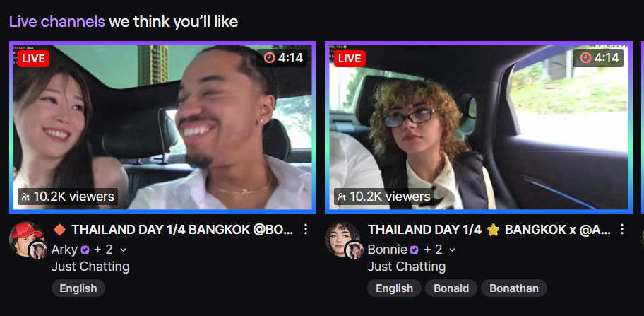 >>945695721Two, did a couple days on stream with them. Accidently called them his girlfriends at one point during the stream.
