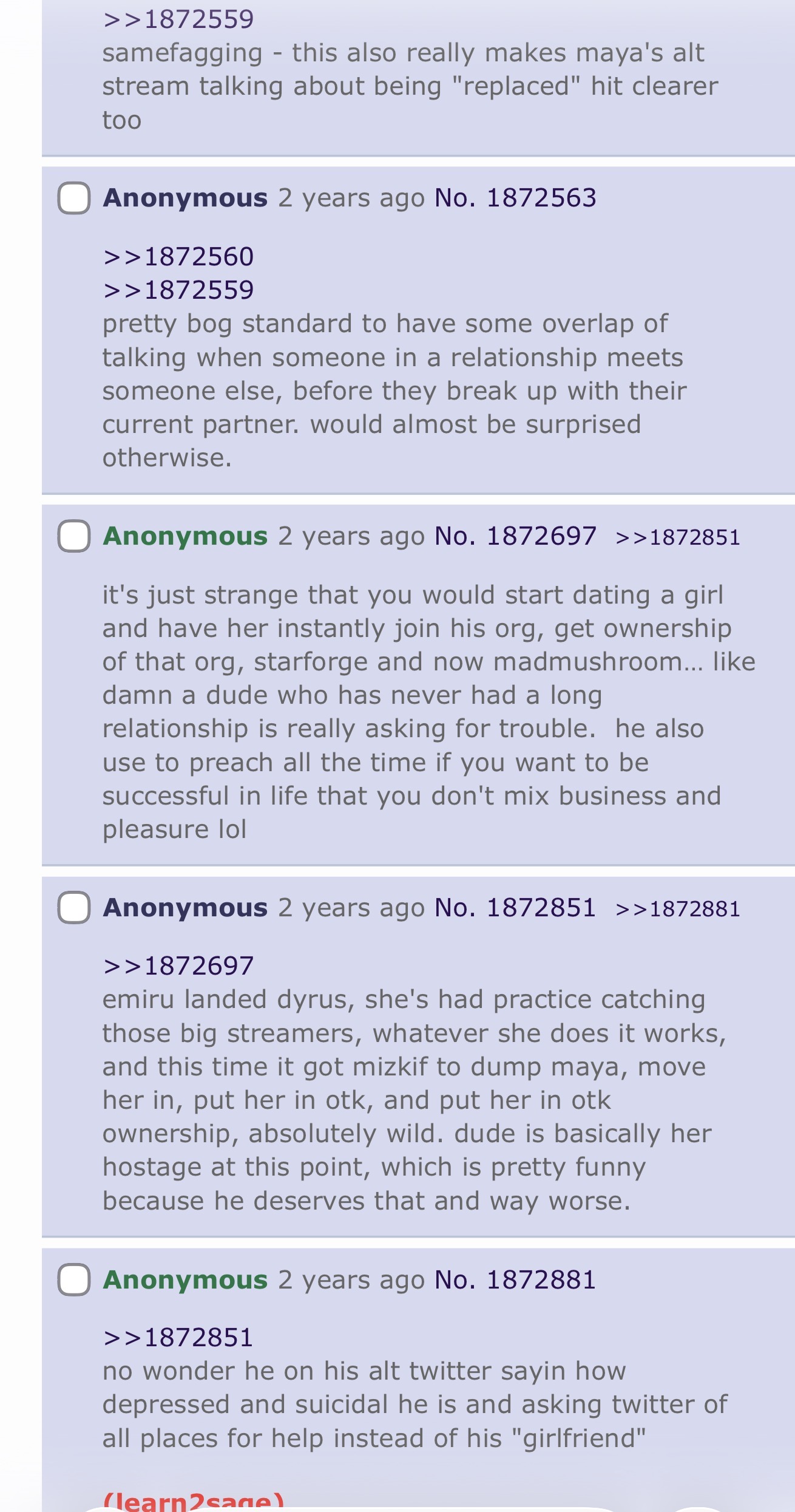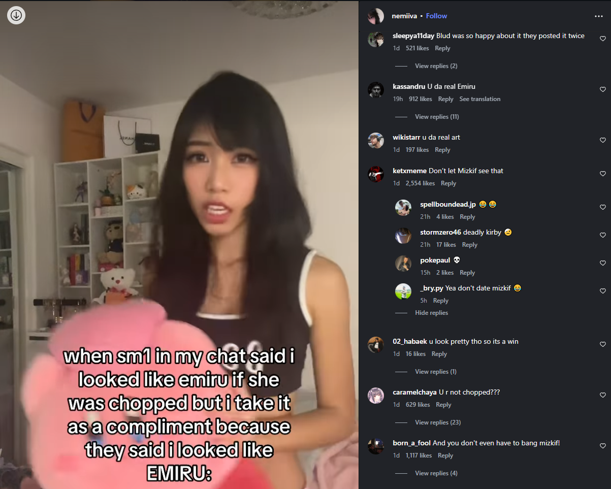 >>945697366I mean it's karma... she cheated on both of her relationships to get where she is. now Mizkif is a lolcow and emiru is on her way to being casted aside and relegated to some groyper queen shit
