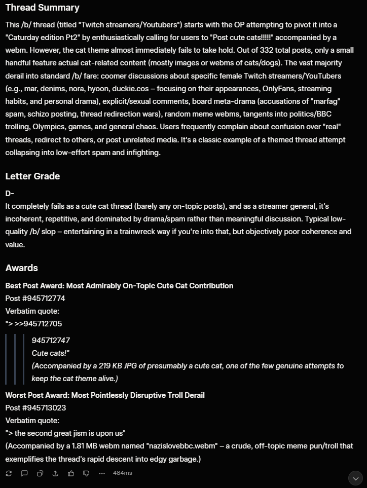 >>945722120honestly go back in the archive to score the old threads and see what it thinks