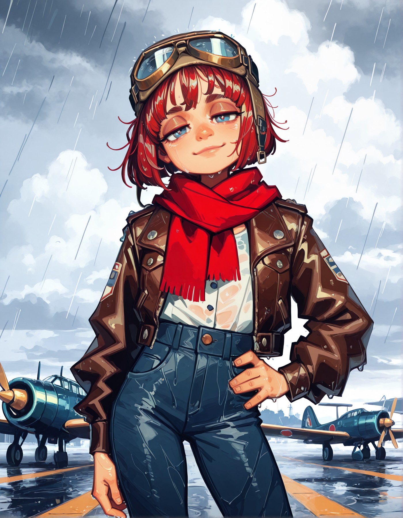 >>945736993Thanks for taking requests! A girl with a messy bob cut and a vintage aviation suit would be great. Red hair, cute more than hot.A pinup shot next to her plane, and then maybe another of her bent over the wing getting her pussy pounded.
