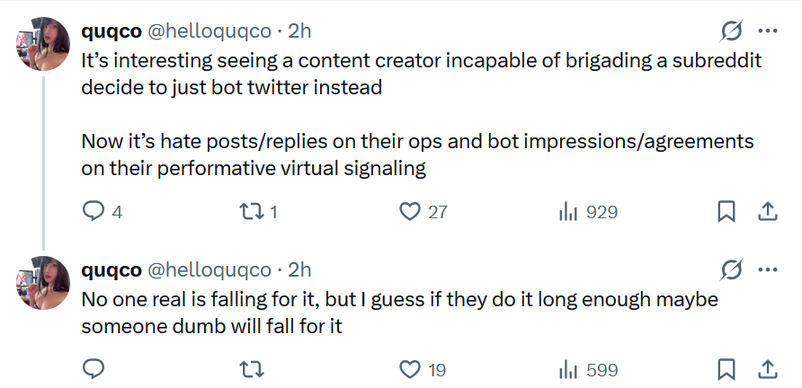 lmao reading emiru's response and noticing where she wrote it herself and the other parts was written for herthe second paragraph (where she lies) uses a different apostrophe. someone else or ai wrote the rest