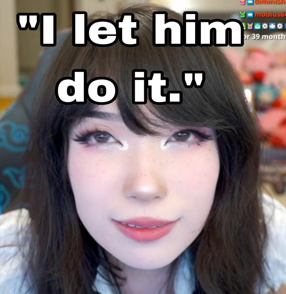 the fall of Emiru is something that should be studied in Streamer Universityfailed titty streamer who slept her way into being in a popular org, OTK, and successfully farming coomers, racists & incels. at the height of her fame where she sucessfully gained tremendous mainstream sympathy where she was sexually abused at Twitchcon, she found a way to bring it all crashing down by doing everything wrong. She will never reach the heights of Pokimane. not disavowing sexual abuse & rapenot attacking pedosnot attacking racist nazis and anti-LBGTQ