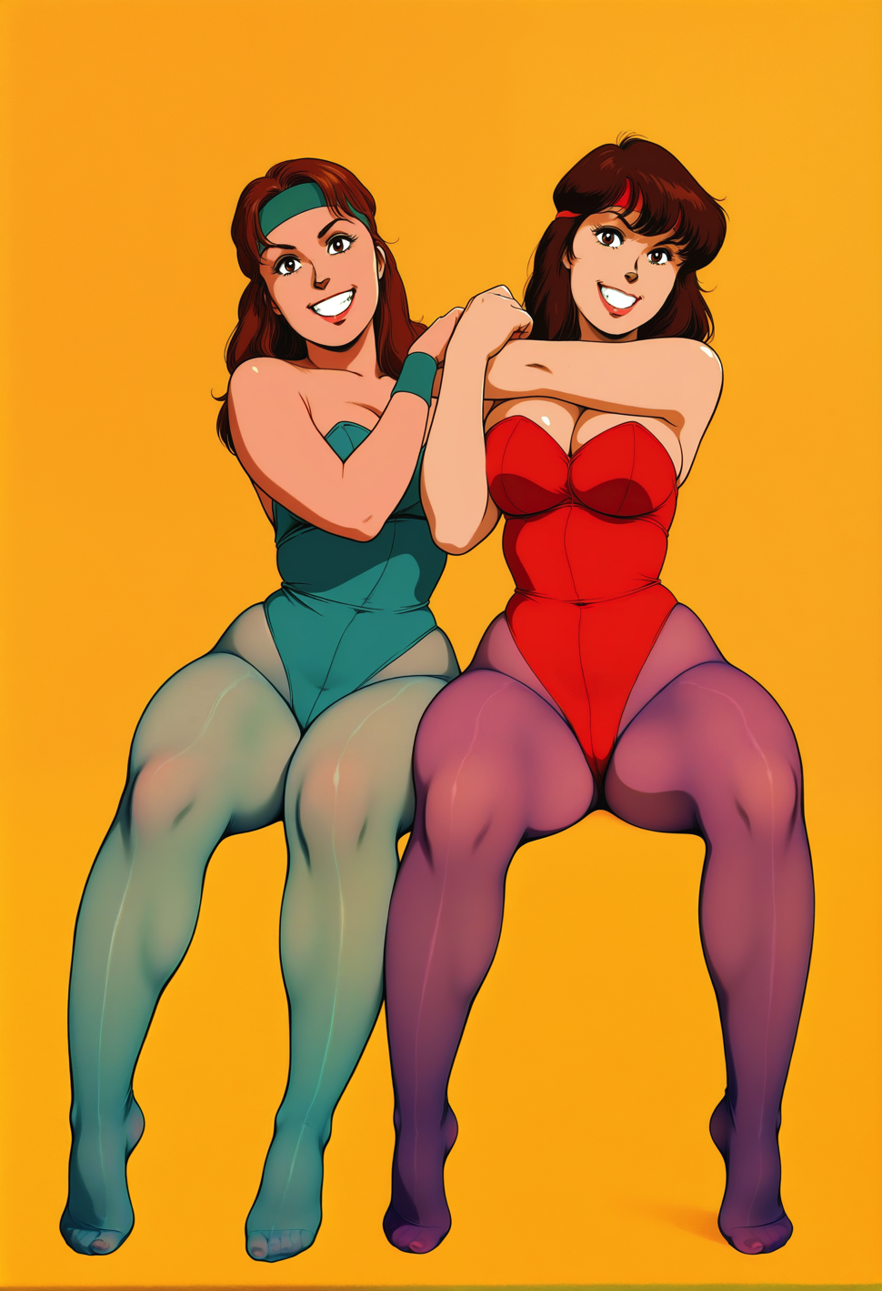 >>945803146Hilda and Rosa in the gym, sports bra and shorts, but Hilda has breast envy and rosa has ass envy