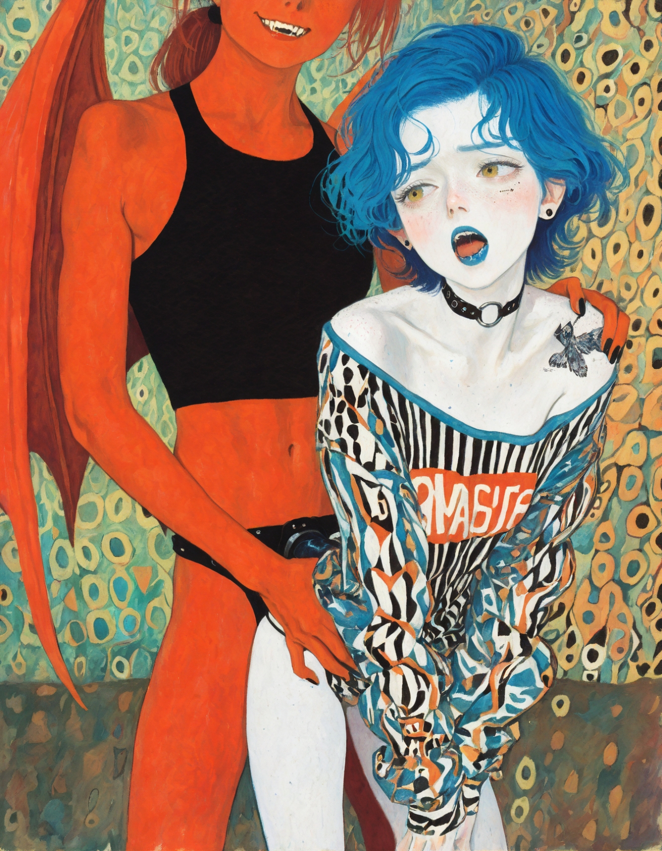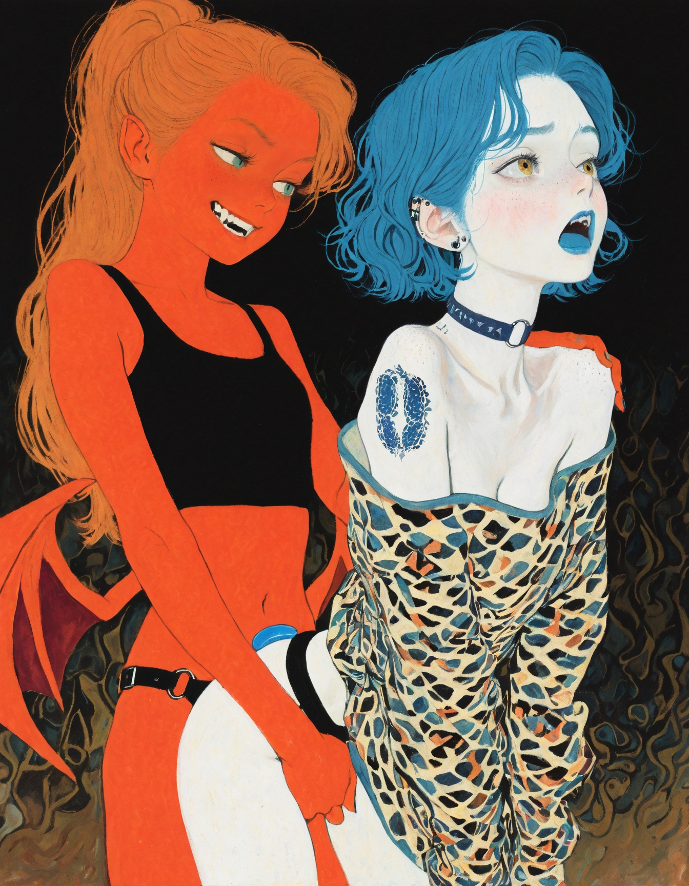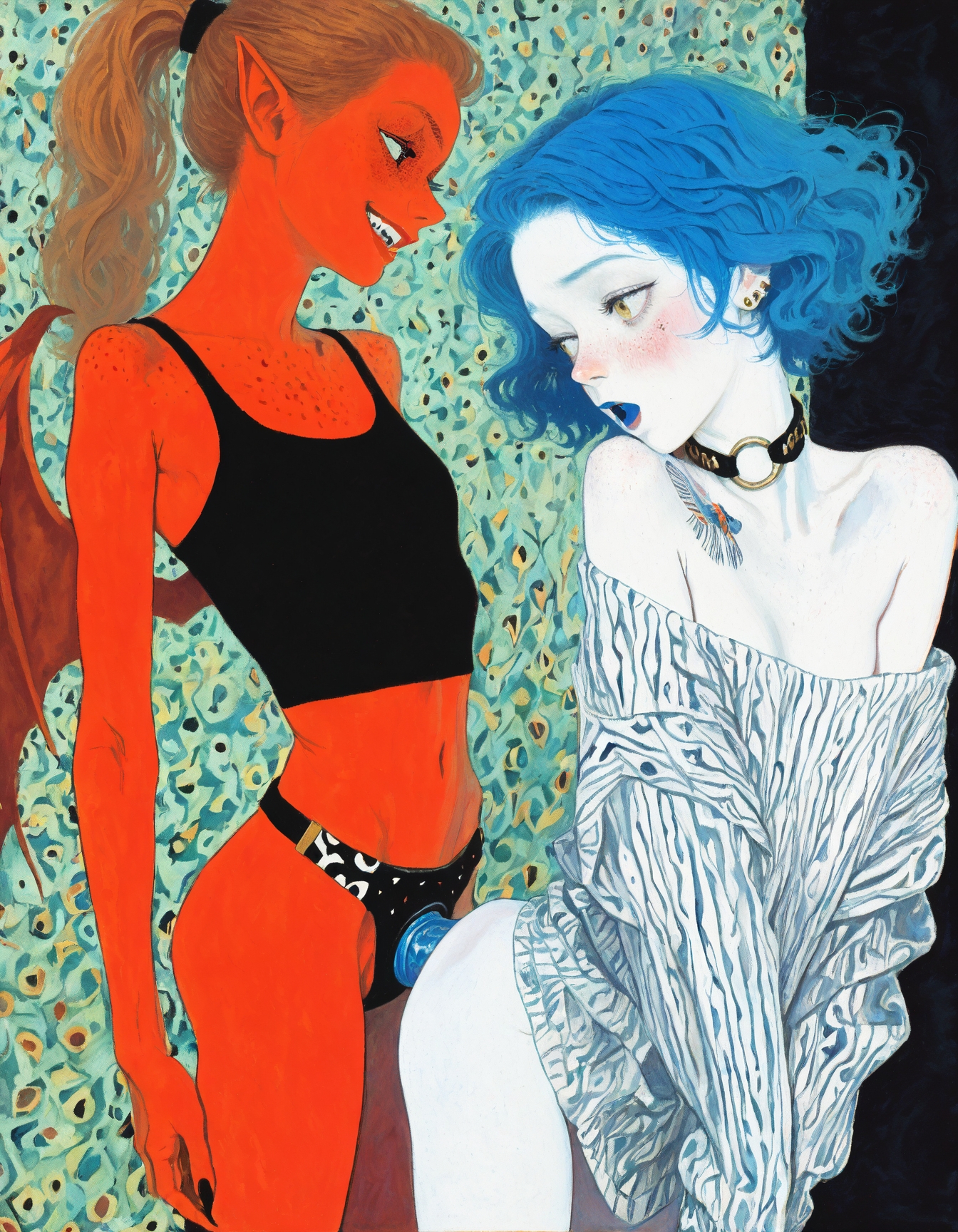 >>945803710what if Red had red skin and horns and a tail and she was very tall and was dominating blue, who was actually an male shorter than she is? also nice