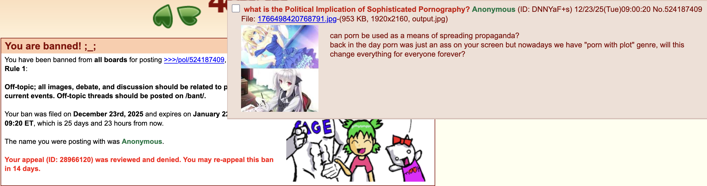 i was banned for a whole month from all boards over this post