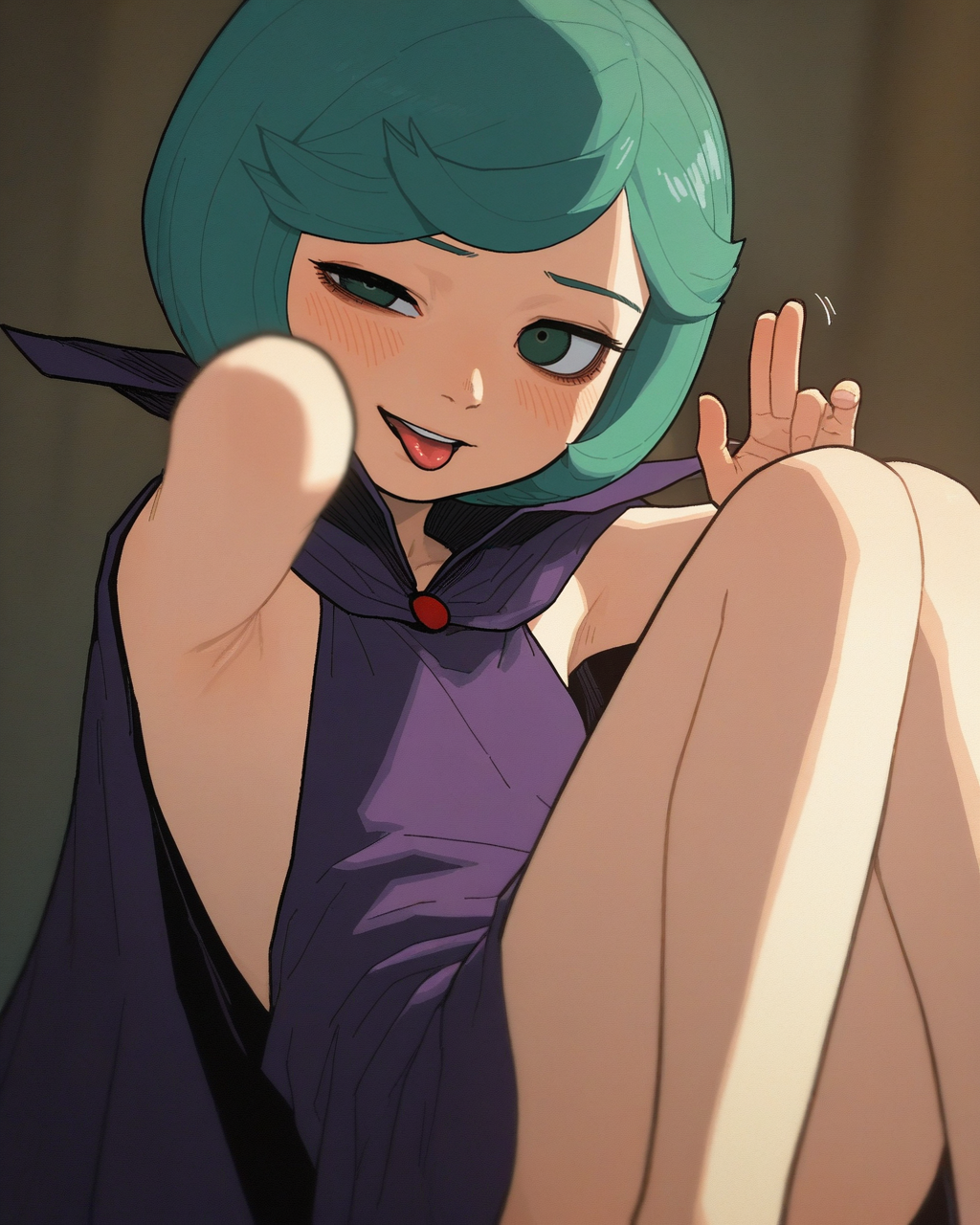 >>945838549Magnificent!This i basically the pose I was thinking, although wondering if she can spread her legs out like a v shape? I might be communicating this like a moron.