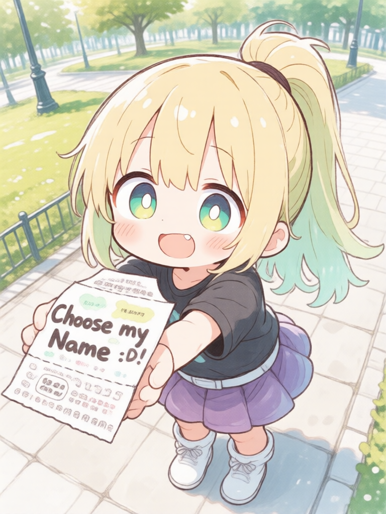 >>945871744https://pollunit.com/polls/qjjfxj7wkyiuwyxggu_mvaYou should go vote on her name, the most popular/common name wins >>945871777>"O-oh...!">>945871976>>945872023I love her little form!