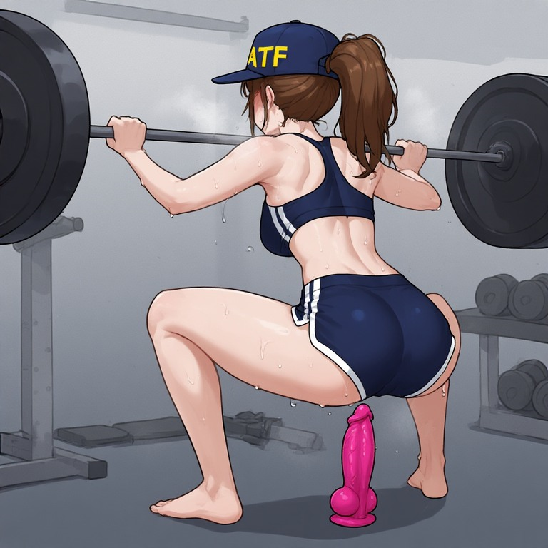 >>945872888>positions dildo under her pussy while she does barbell squats