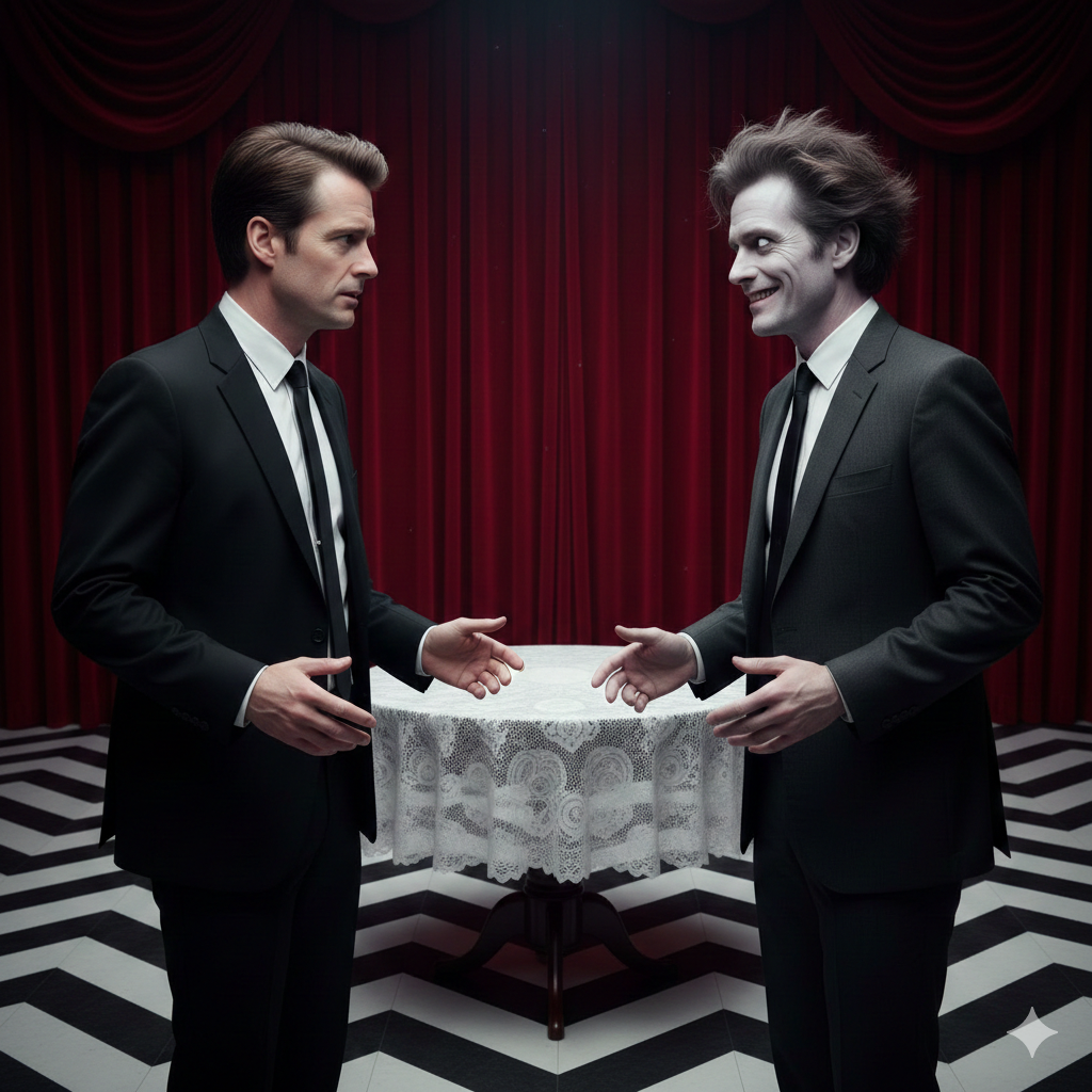 Pretty creepy. Except Cooper looks nothing like Kyle MacLachlan and his Doppelgänger is just Dafoe.
