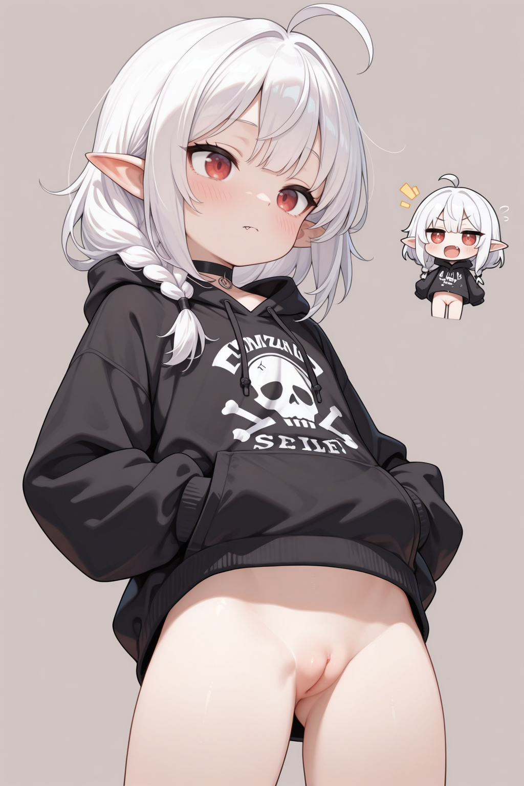 (second panel from behind: 1.1), visible face, big ass, wide hips, cleft of venus, no panties, upskirt, pussy, clitoral hood
