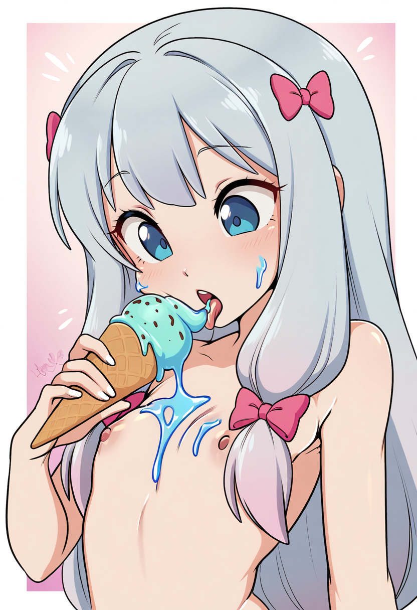 >>945974424Found an old one of Em having ice cream XDHer butthole is nearly visible