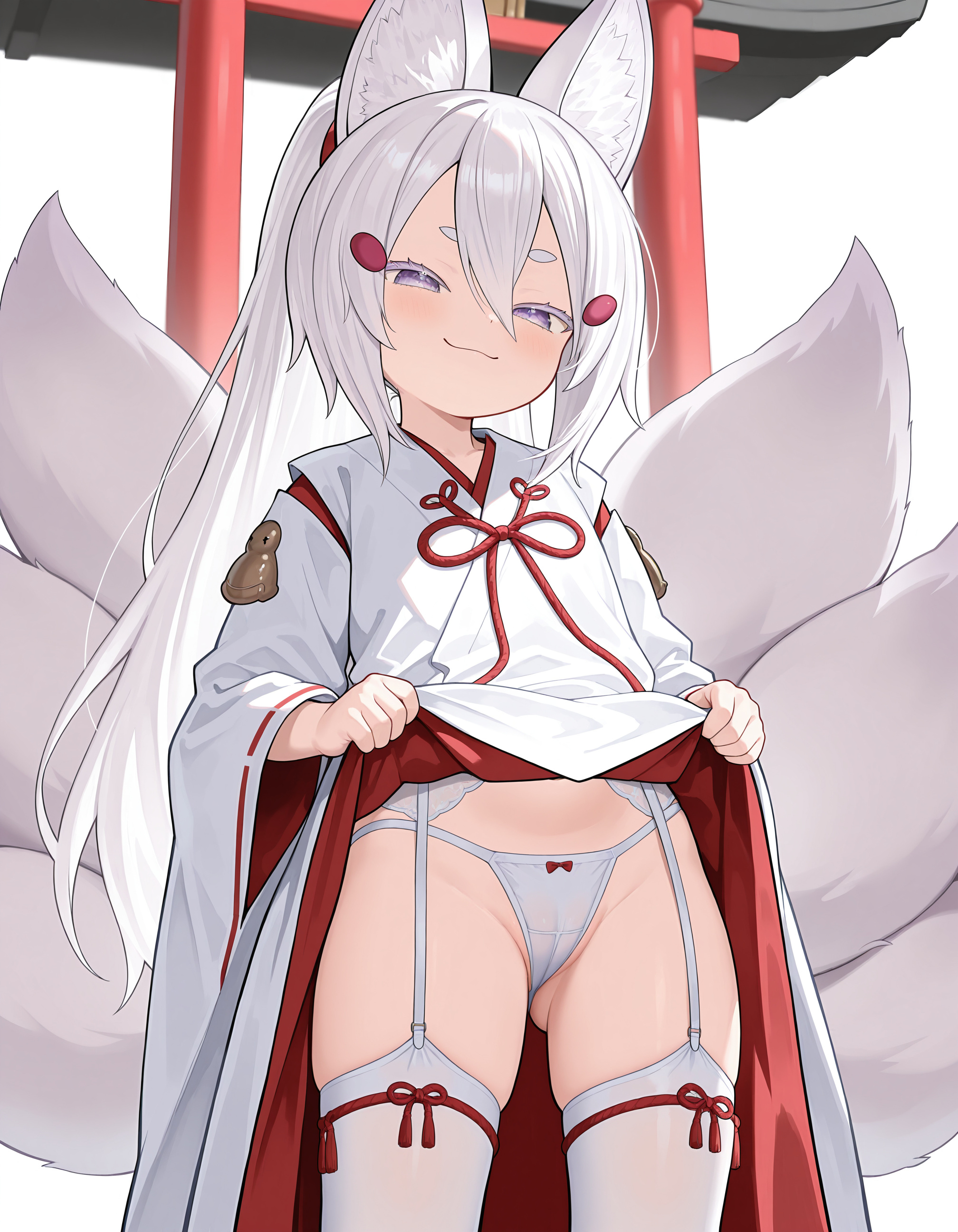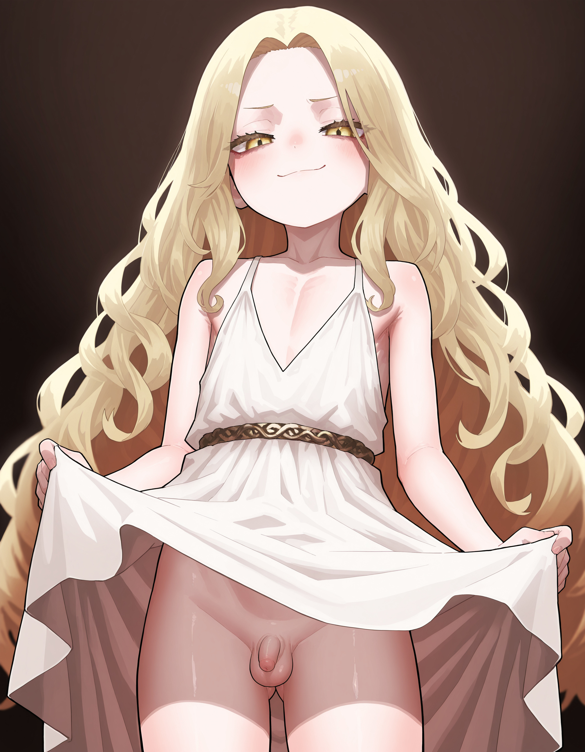 >>945985992>>945986039I love how her hair hides her eyes, giving her that evil look normally reserved for bratty/sinster type shotas. There's a question here of how well an adult can resist her. She's definitely aware of what she's trying to do.