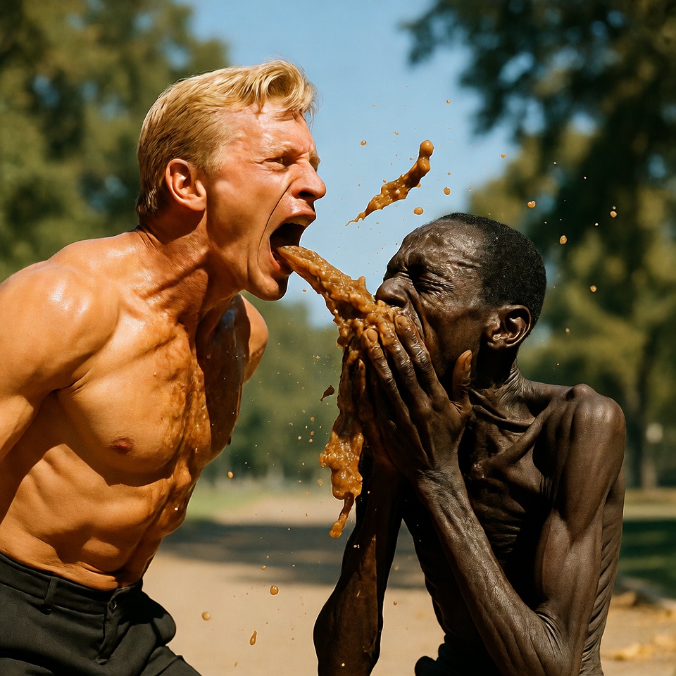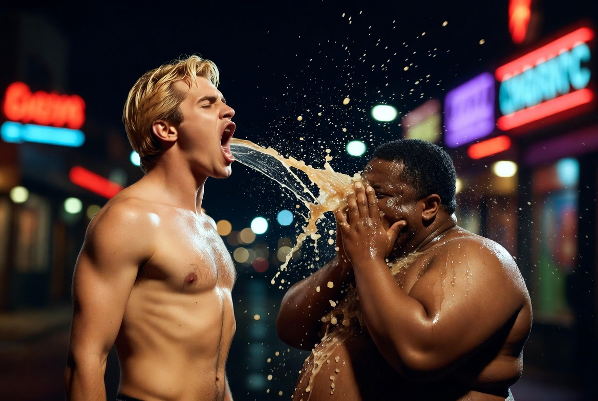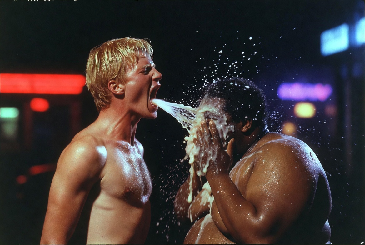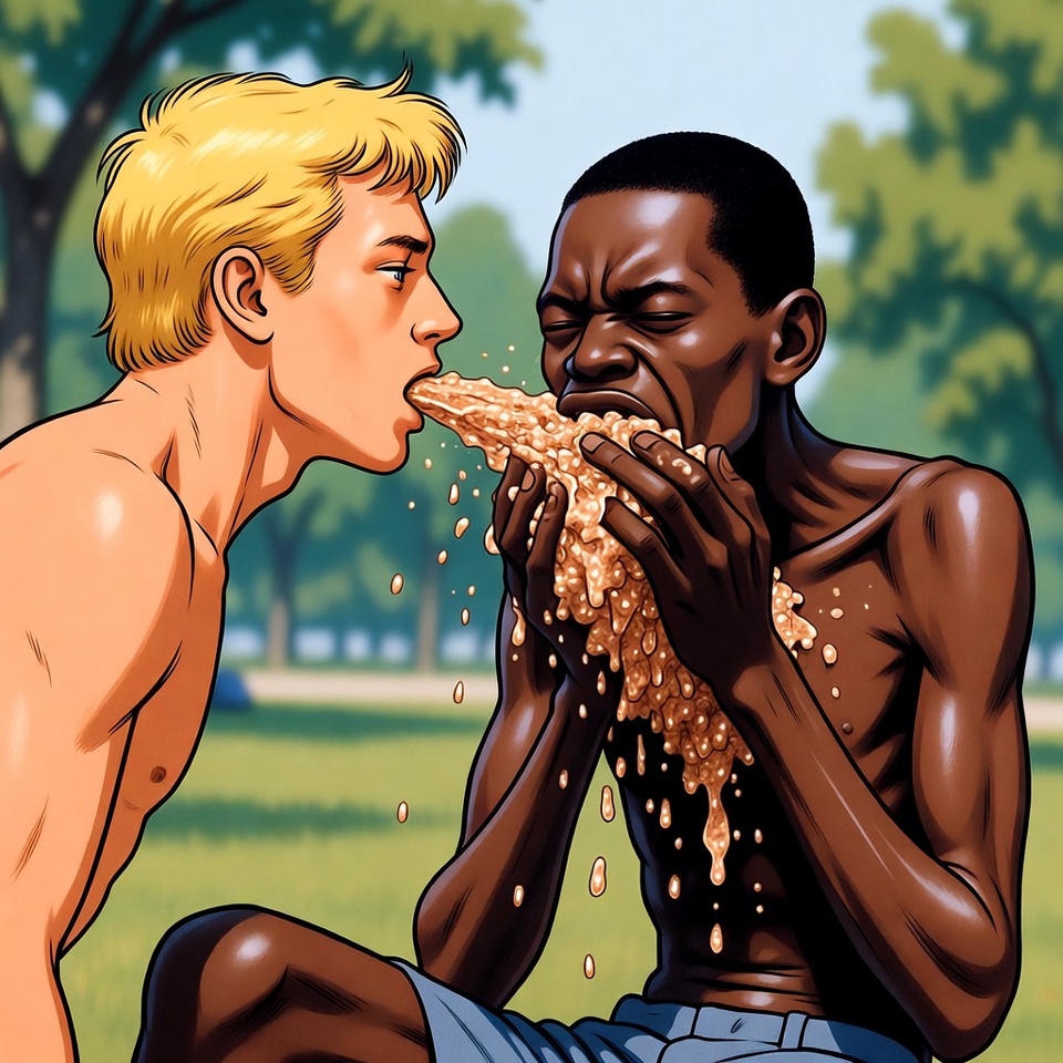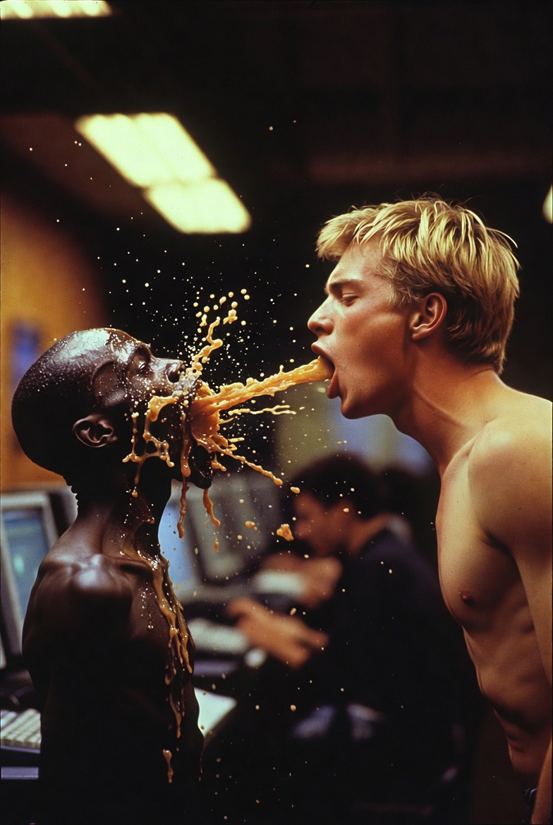 >>945994055>>945994081Dude looks like he's throwing up all the Black guy's cum