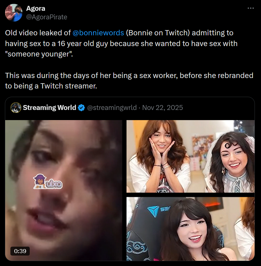 >>946029235This clip will ruin Bonnie's career one day. One reaction from a Hasan or a XQC type and it's totally over and GGs.