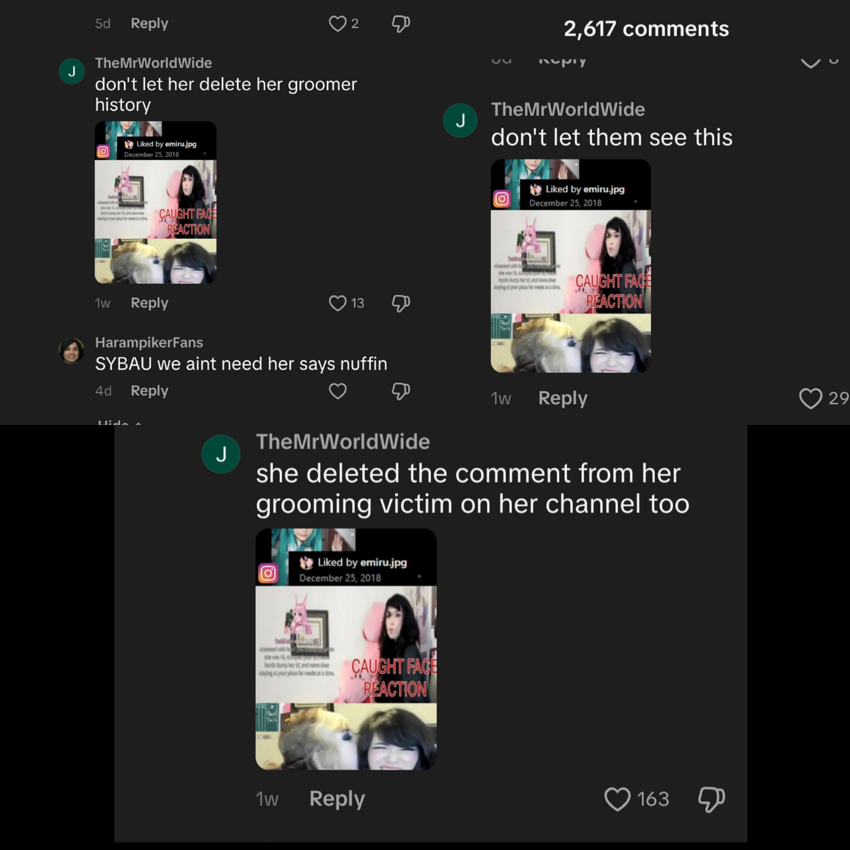 >>946116065I said the picture of her crying made me hard and then he stopped posting it….