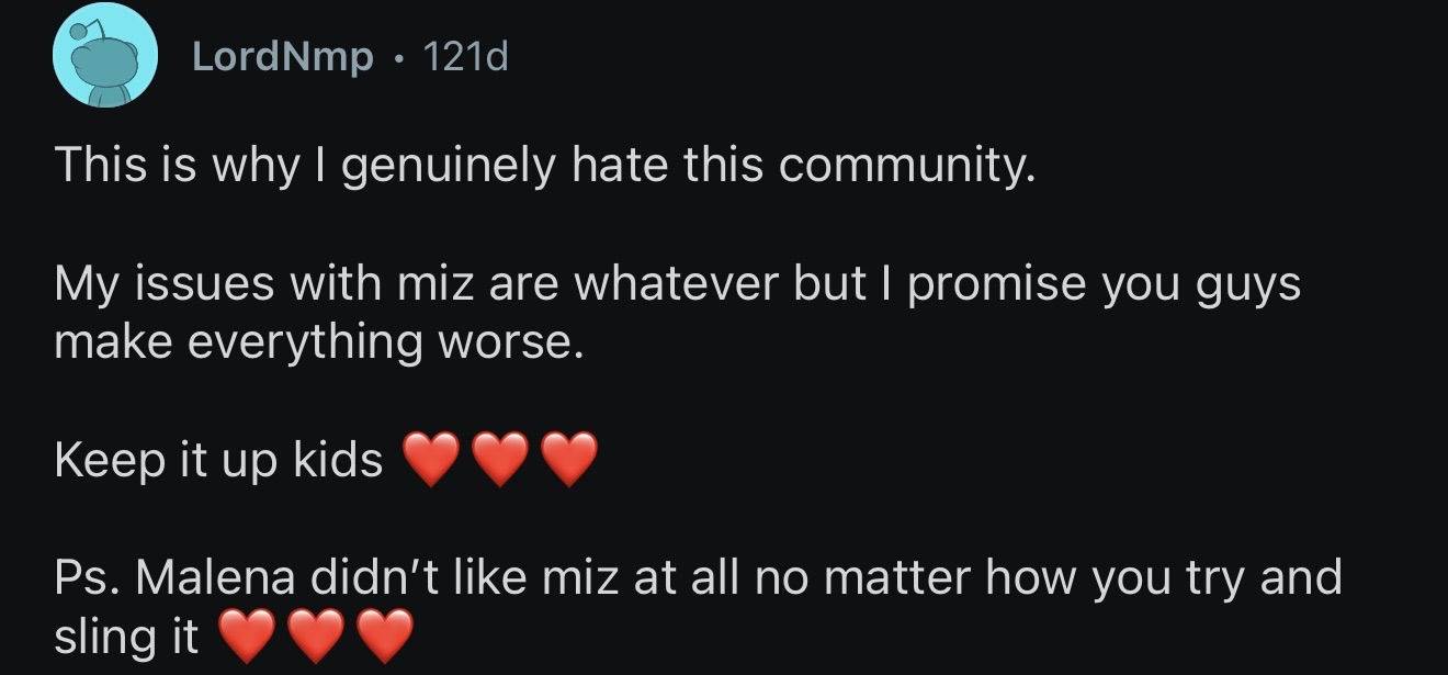 >>946116636Nick is more insufferable than miz and no one is ready for that conversation