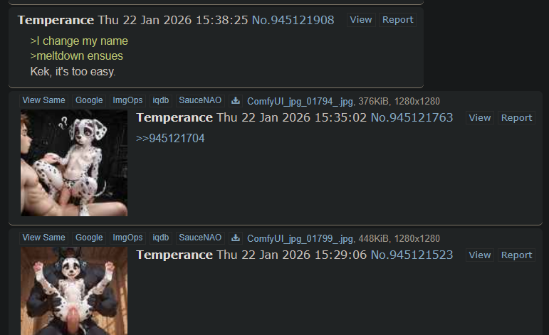 Can you not? EditionLast time on /degen/: >>946118627 (Cross-thread) (Cross-thread)>>> Local install <<<ComfyUI (Experienced): https://github.com/comfyanonymous/ComfyUIForge (Advanced): https://github.com/lllyasviel/stable-diffusion-webui-forgeEasy Diffusion (Beginner): https://easydiffusion.github.io/>>> Online Image Generators <<<Bing/Copilot: https://www.bing.com/images/createCivitai: https://civitai.com/Tensor: https://tensor.art/ (SFW) || https://tensorhub.art/ (NSFW)Pixai: https://pixai.art/Grok: https://grok.com/imaginePerchance: https://perchance.org/generators>>> FAQ <<<Tags for Prompting: https://danbooru.donmai.us/wiki_pages/tag_groupsModels/Embeddings/Characters/Prompts: https://civitai.comLoRa Training: https://github.com/derrian-distro/LoRA_Easy_Training_ScriptsSamplers: https://stable-diffusion-art.com/samplers/AMD GPU: https://rentry.co/sdg-link#amd-gpuLink Hub: https://rentry.co/sdg-linkOP Pasta: https://rentry.co/degenpastaArchive: https://thebarchive.com/b/search/subject/DEGENerated/Archive Alternative: https://archived.moe/b/search/subject/DEGENerated/>>> Related boards (their OP may have additional resources) <<<>>>/aco/sdg>>>/d/ddg>>>/e/edg>>>/g/sdg>>>/g/ldg>>>/h/hdg>>>/trash/sdg>>>/trash/slop>>>/u/udg>>>/vt/vtai>>>/vg/aids>>>/y/ydg
