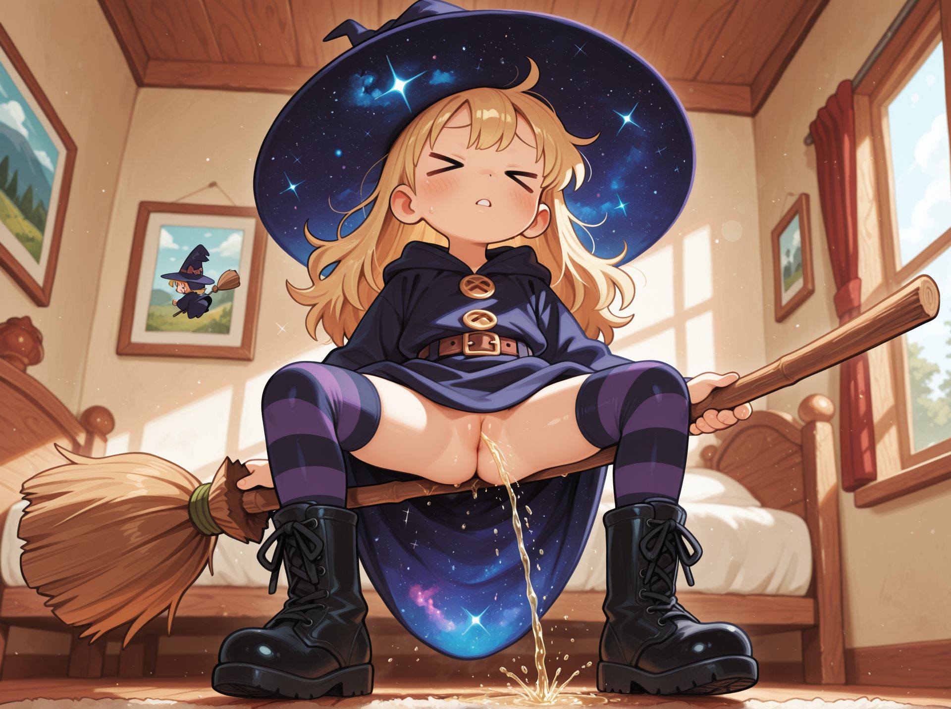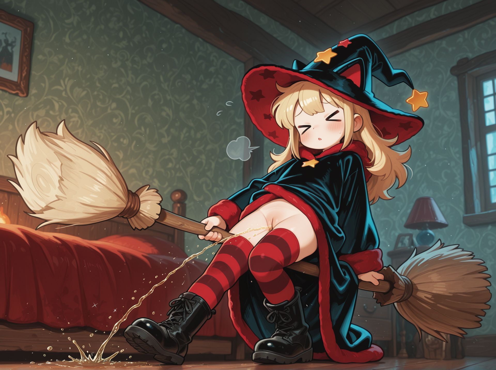 >>946143040In this case it was literally just writing "cosmic hat, cosmic robe"It's definitely hit or miss from model to model but using adjectives to describe a particular piece of clothing can work quite well even if it's not a legitimate danbooru/e621 tag. >velvet hat, velvet robe