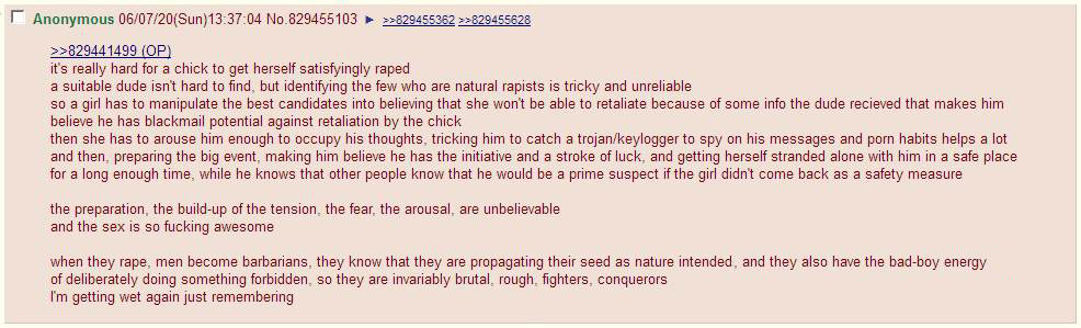 >>946354794>A bunch of random pseud buzzwords being used incorrectly and a wojack Opinion discarded.Never mind the fact that near all mainstream porn sites have de-facto banned any videos that relate to rape fantasy. The only times I get to engage with it are places like here or actually roleplaying with women (the majority who from my experience, have these fantasies themselves and bemoan that more men don’t).