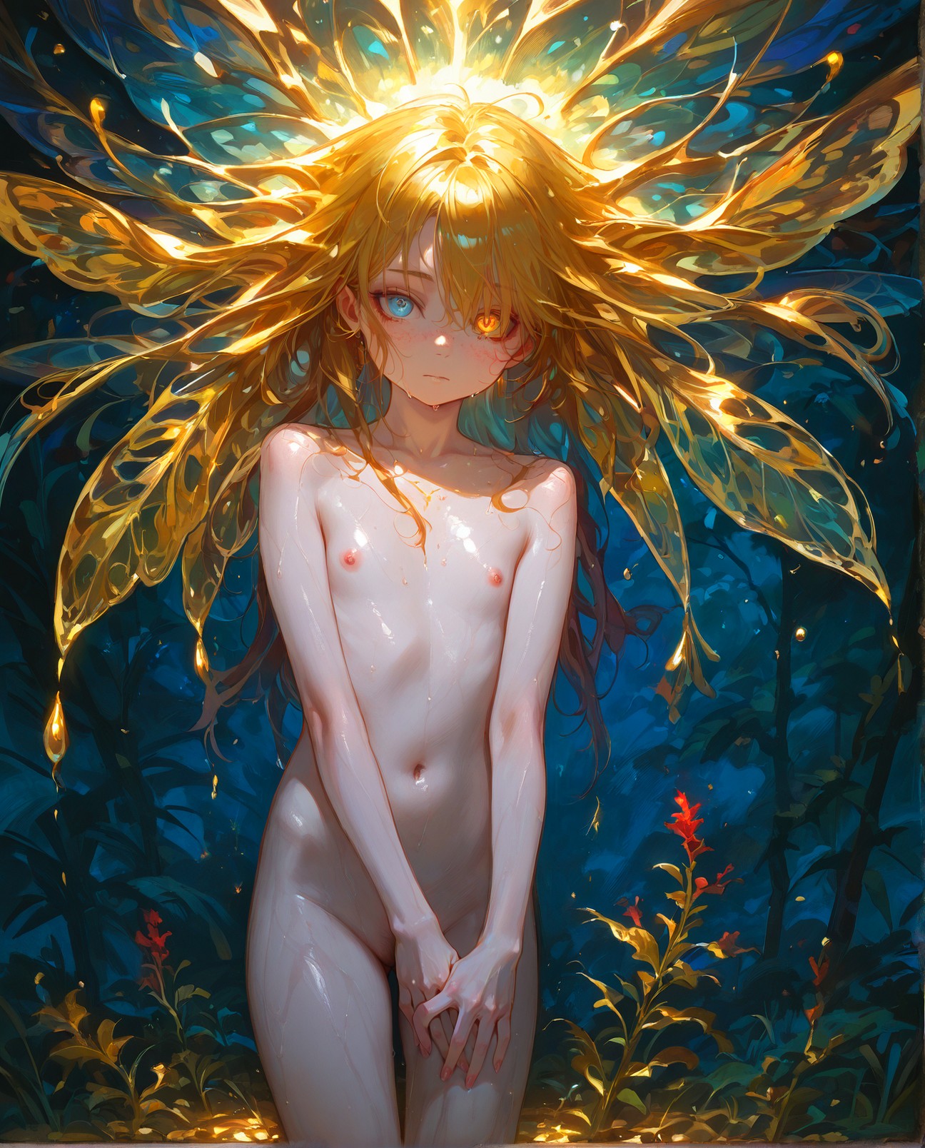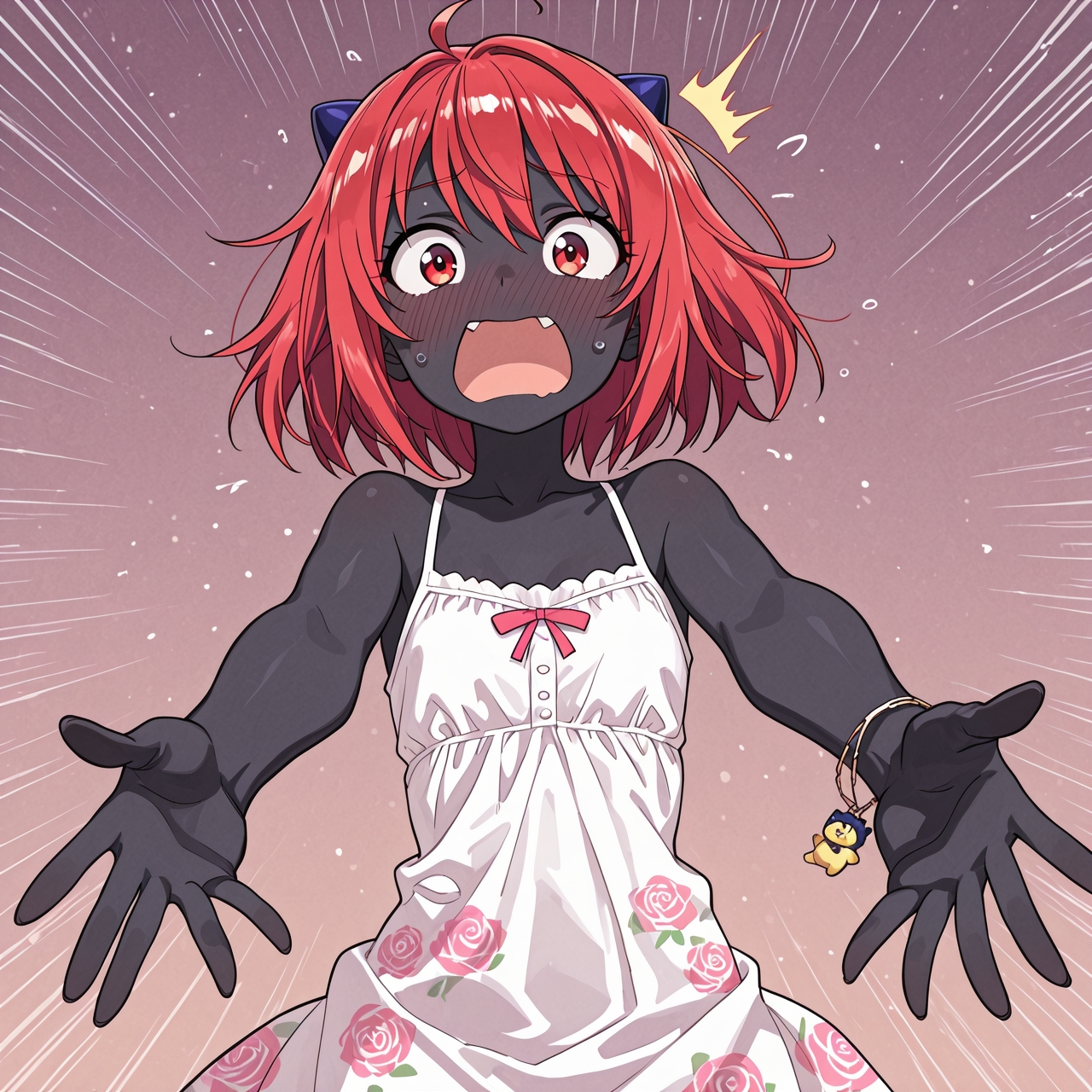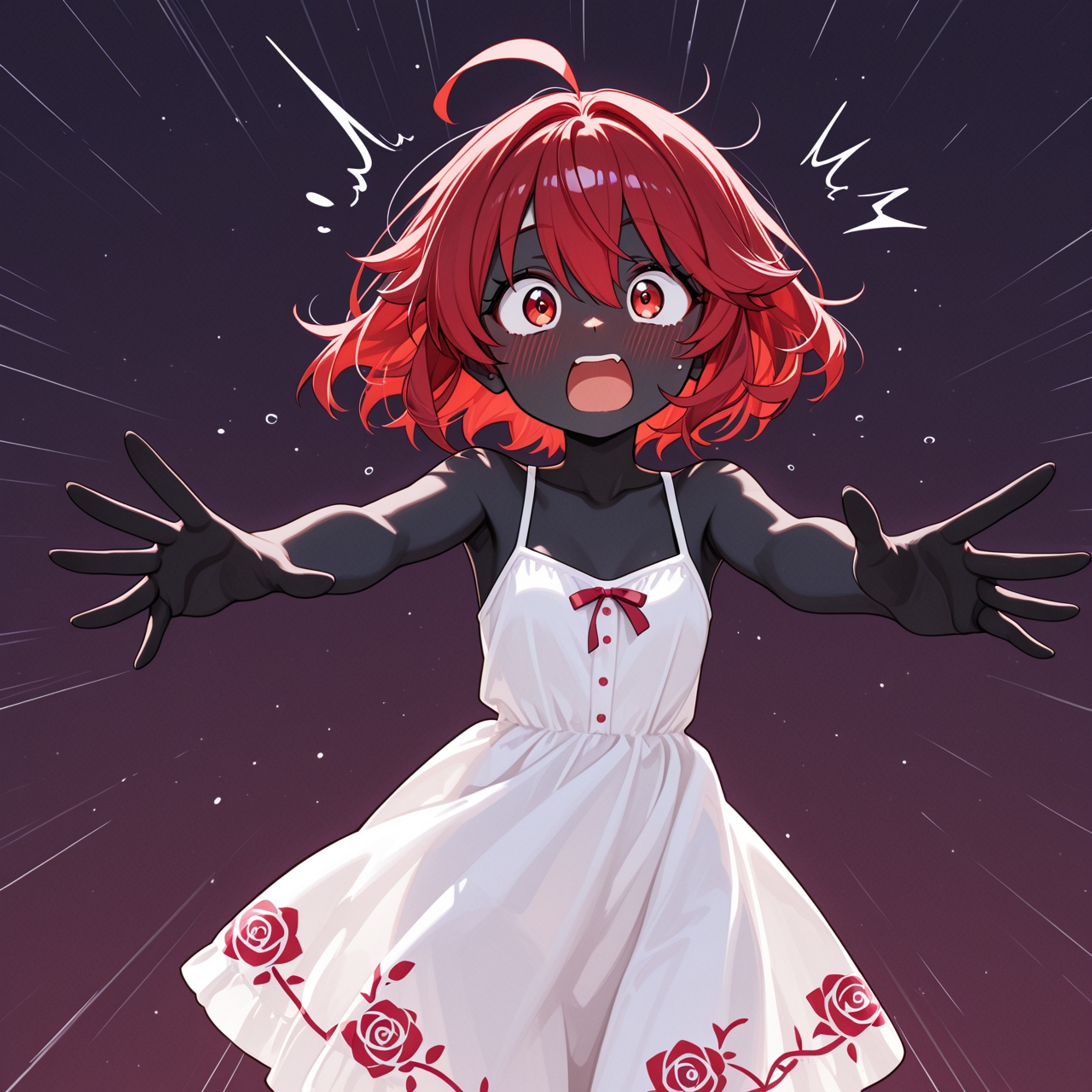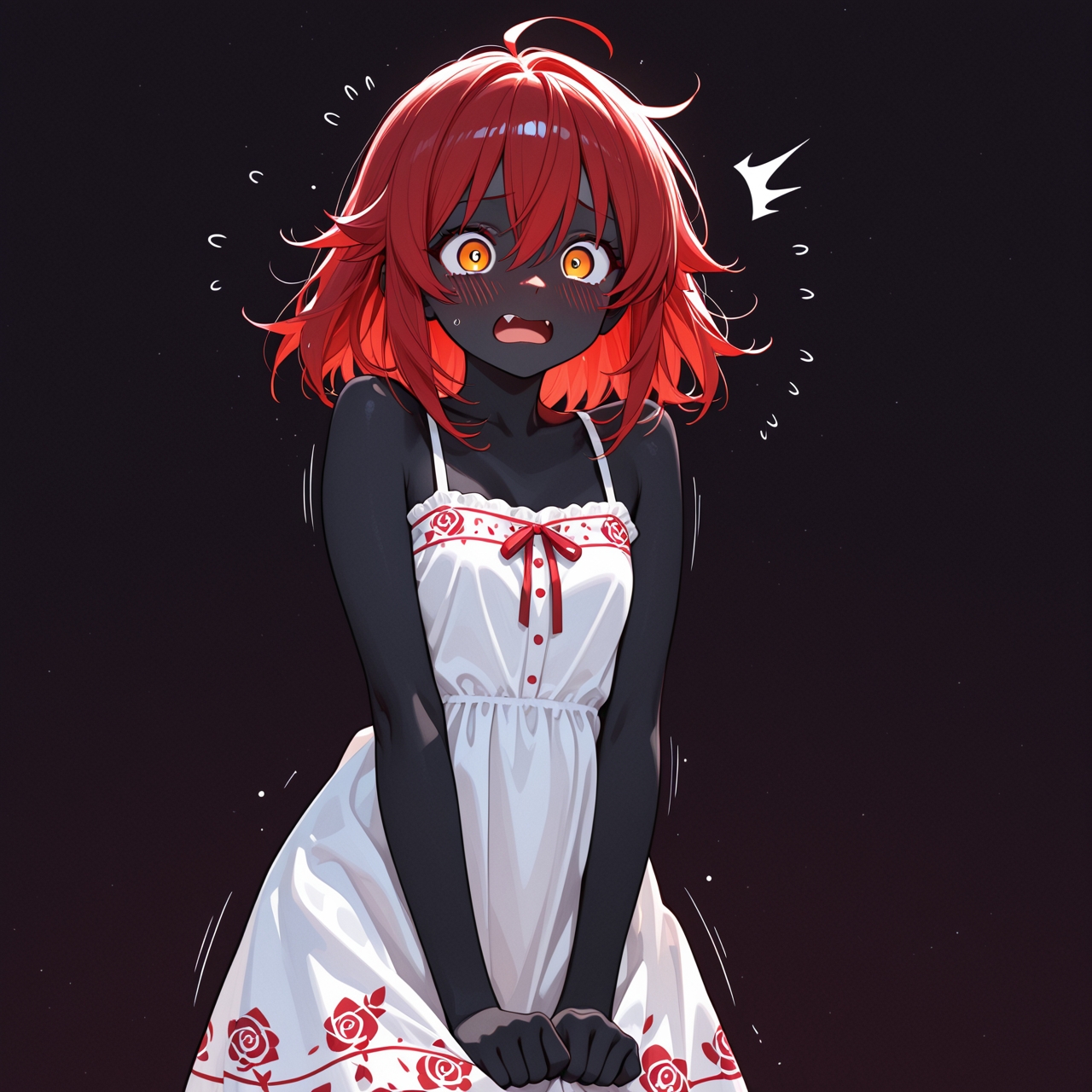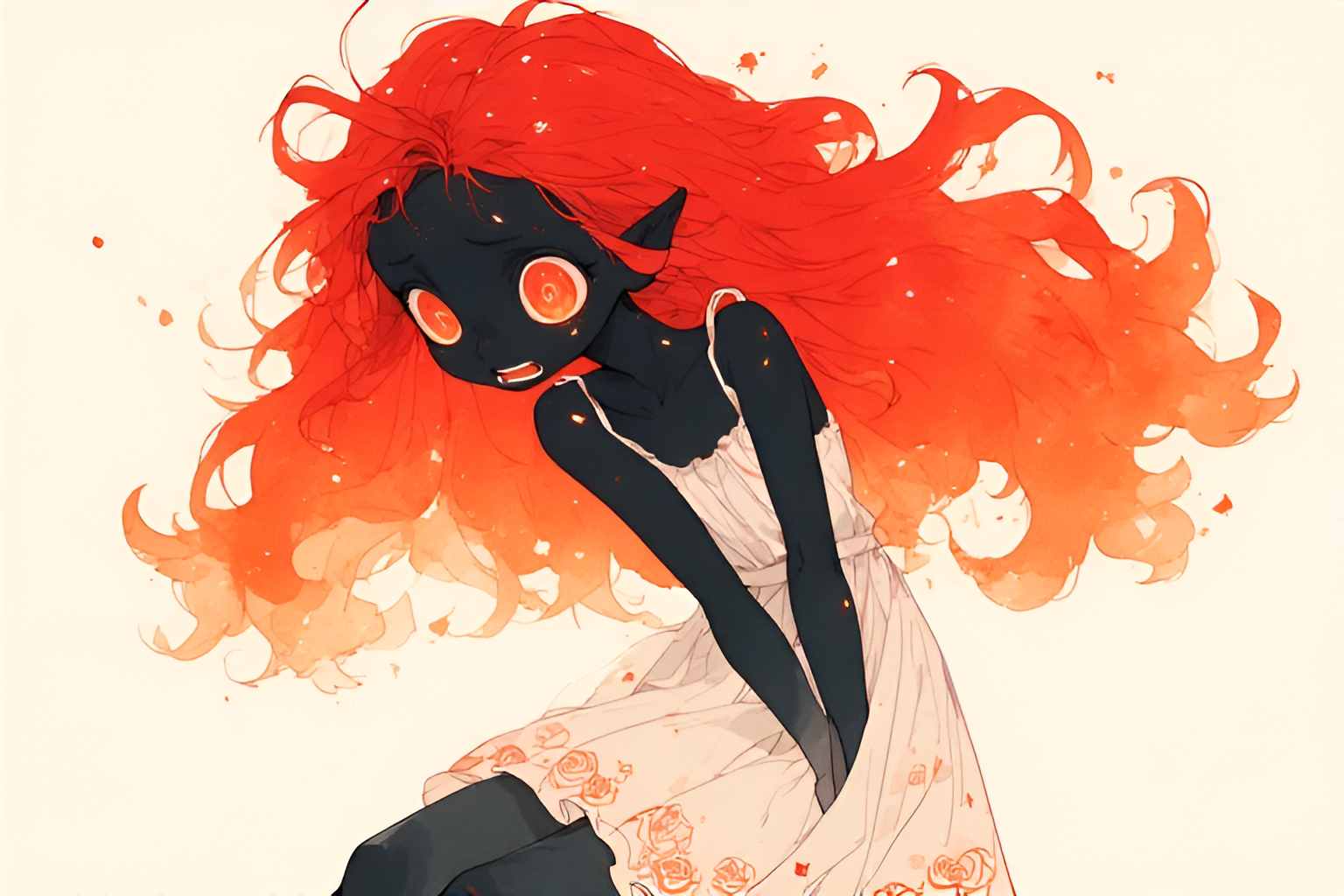 >>946353715here's the prompt and seed---breathtaking illustration of A playful anime-style illustration of a petite alien girl with glowing onyx-black skin and radiant solar-flare red hair, styled with light motion. She is reaching both hands behind her to protectively cover her bottom, her eyes wide with comic alarm and her mouth open in a shocked expression. Her cream sundress with rose-print hem flutters slightly as she reacts, emphasizing her flustered, defensive pose. Her ember-like eyes are expressive and exaggerated for comedic effect. No background. Minimalist watercolor rendering in the style of Yoshitaka Amano, with soft lines and humorous charm. yuri romance comedy., illustration, masterpiece, breathtaking illustration.Overall, it's an absolute world-class masterpiece illustration. It's an aesthetically pleasing illustration with impeccable attention to detail and impressive composition. (seed:::160568684)