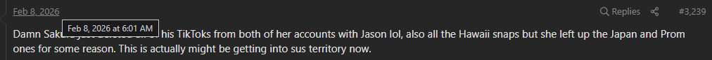 >>946358191He posted that jolly ass snap in her apartment gym earlier that night and there was definitely something off with Sakura in her stream with Asta. I'm guessing she confronted him about some stuff later than night and he made the decision to end things. Without guessing too much I think that makes the most sense