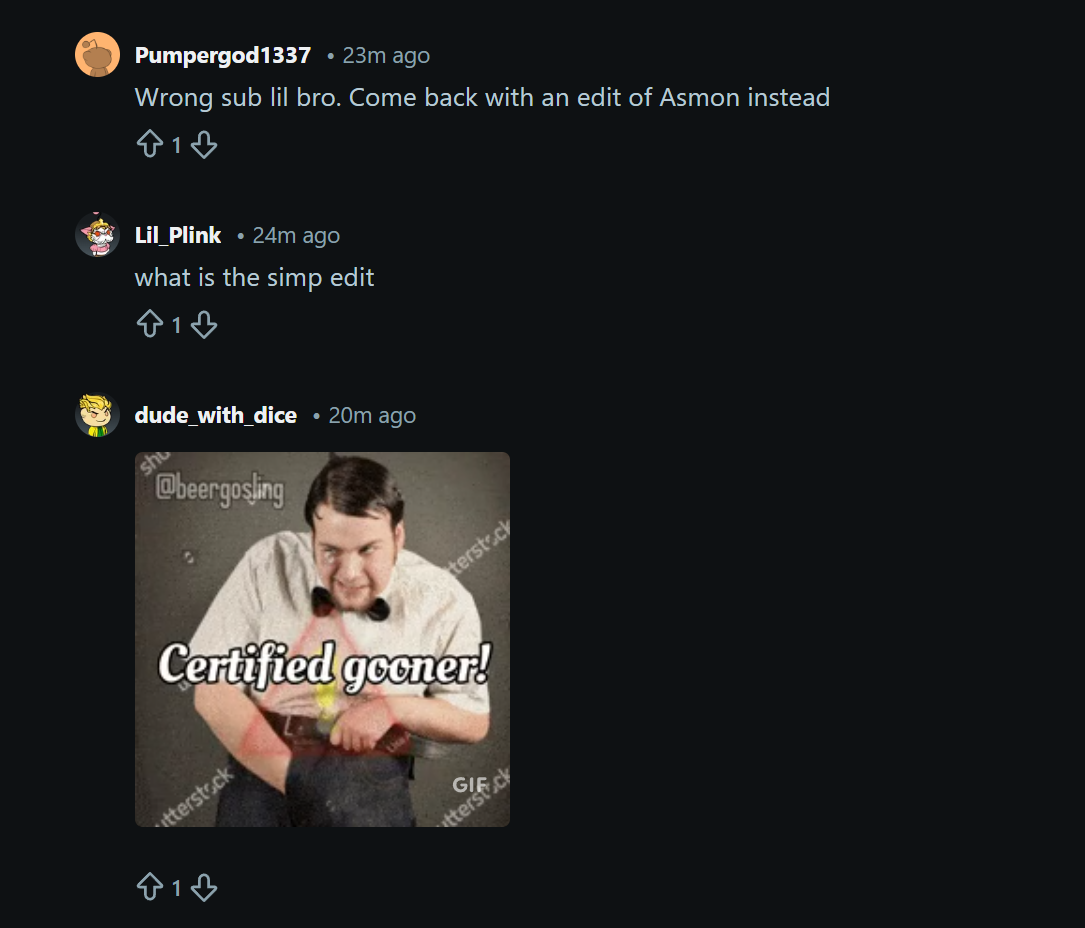 >>946361135Asmon's 40+ year old community making Emi edits like this lmao