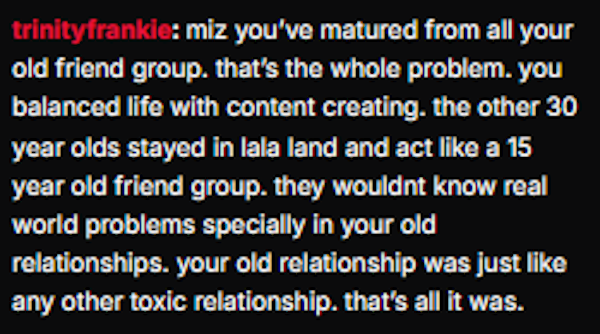 Mizshit delete streams cause that guy was right everyone left him