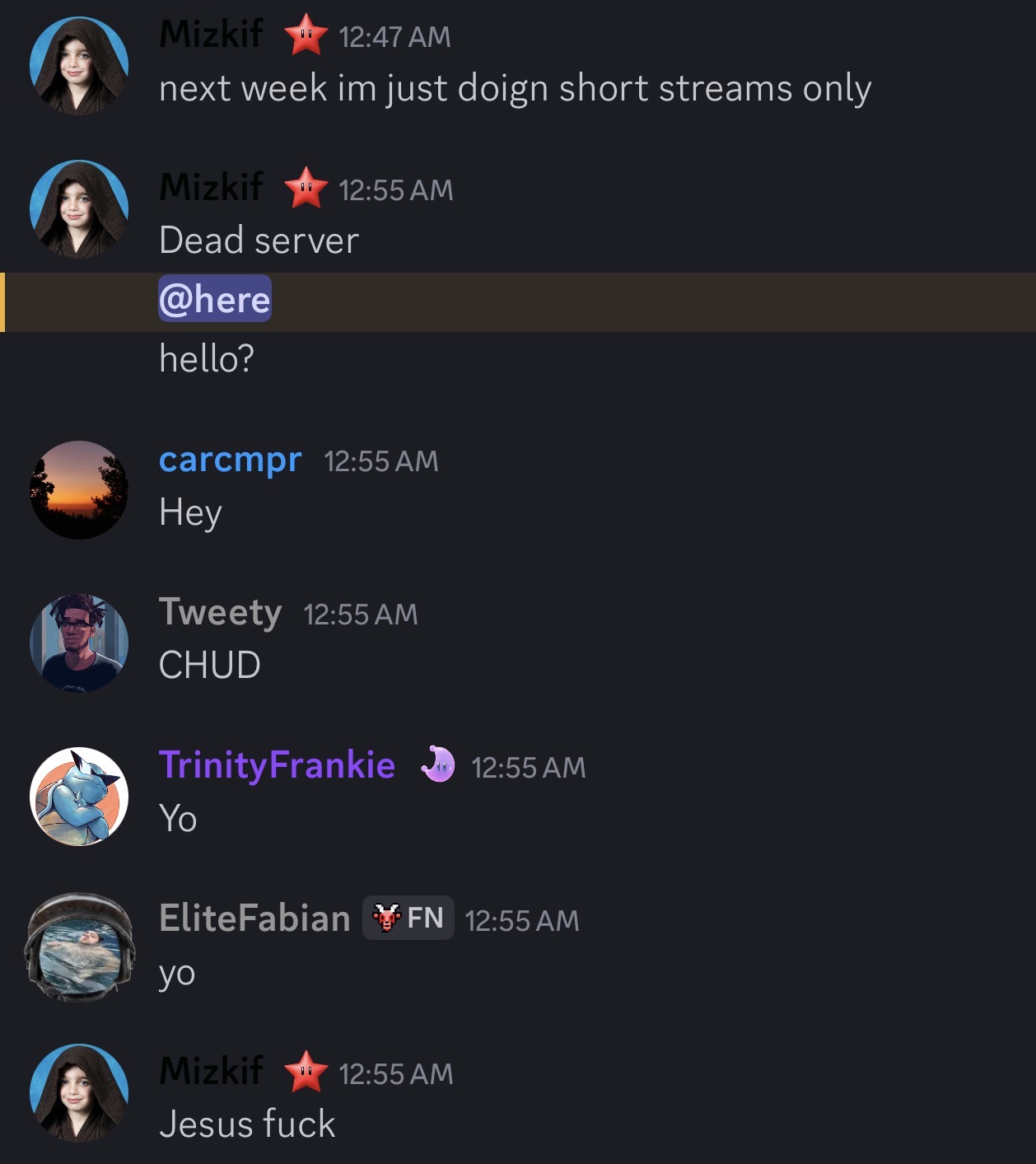 10 minutes later and not a single reaction to his message in discord. It’s actually crazy how far he’s fallen off