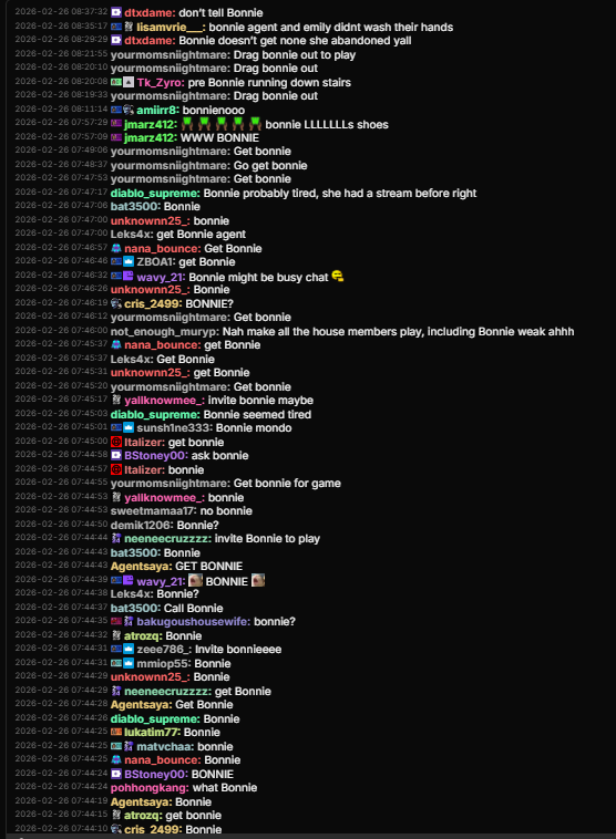 Chat asking for Bonnie again when she clearly doesn’t want to be there.