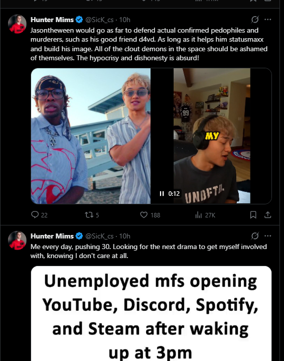 >>946401295im blind but my point still applies. that guy is still retarded, even more so than the people dicksucking sakura to hate on jason. Doesn't help her in the slightest>>946401307you will know at around 3pm pst today or whenever jason goes live (he's probably doing a laptop stream since he's at the mr beast shit)