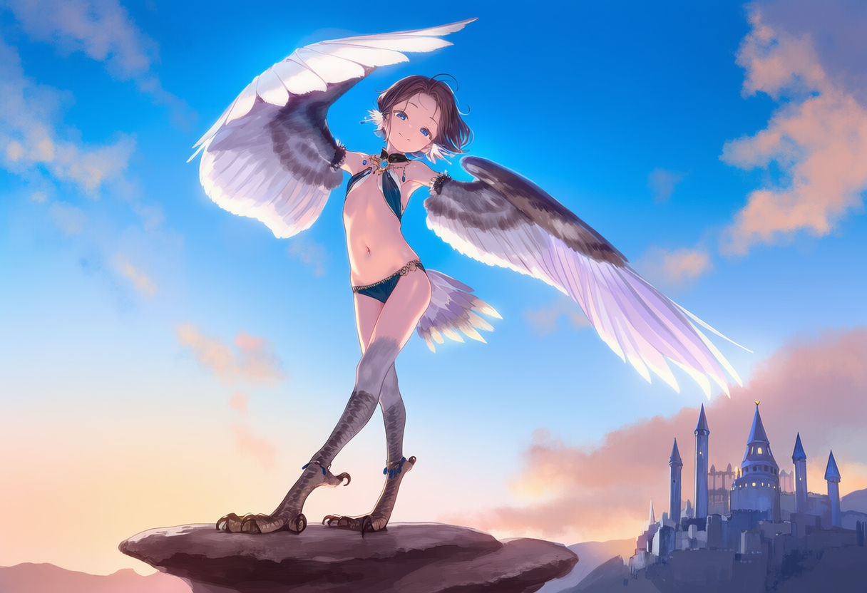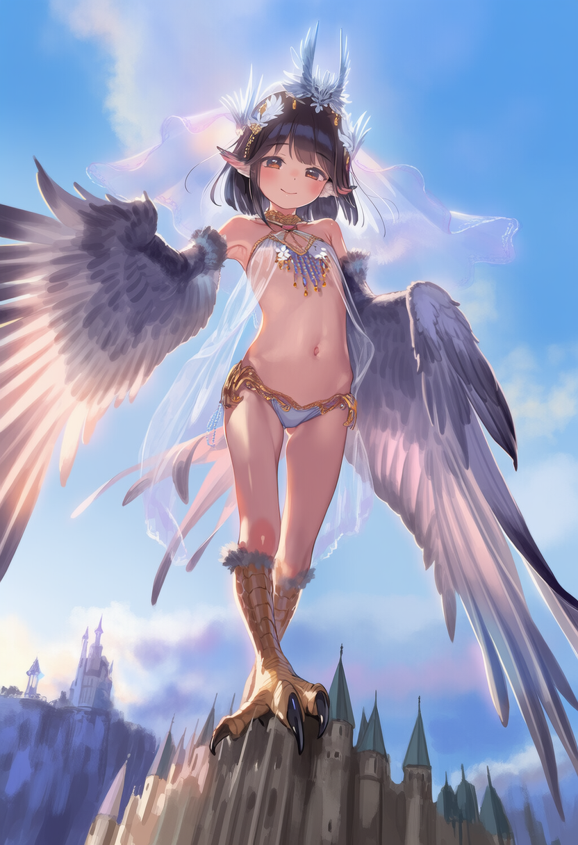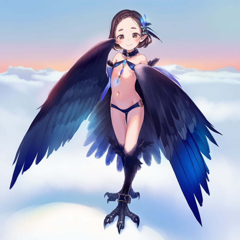 >>946424026Thank you ^.^Just tossing in "girl, loli, harpy" basically.Fun to see what random stuff you get.>>946424012>HARPY PUSSY ATTACK!