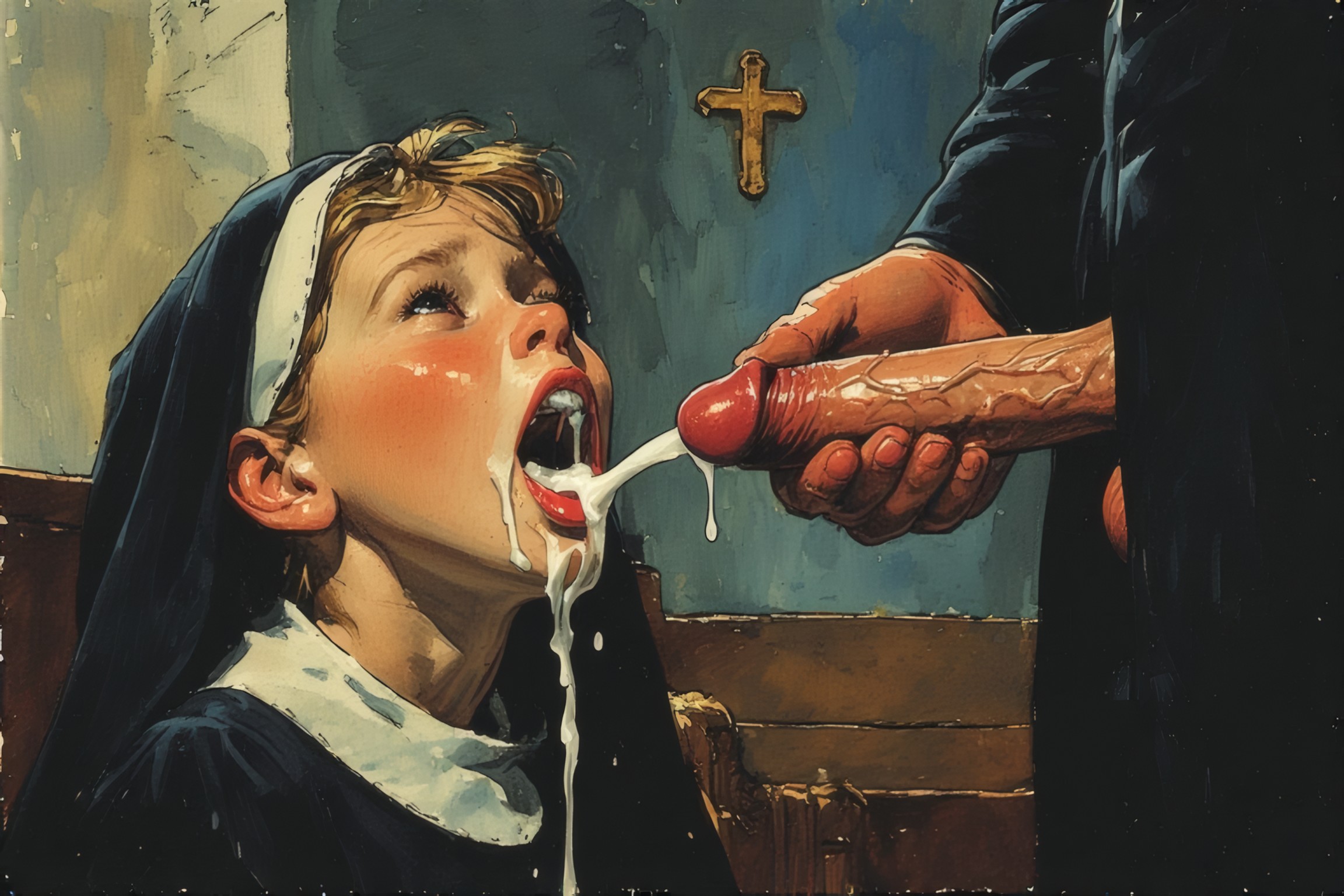 >>946445076'thats right, honey; open wide, just like daddy taught you.'>The lights slowly come on as she recognizes your voice and strains to follow your direction