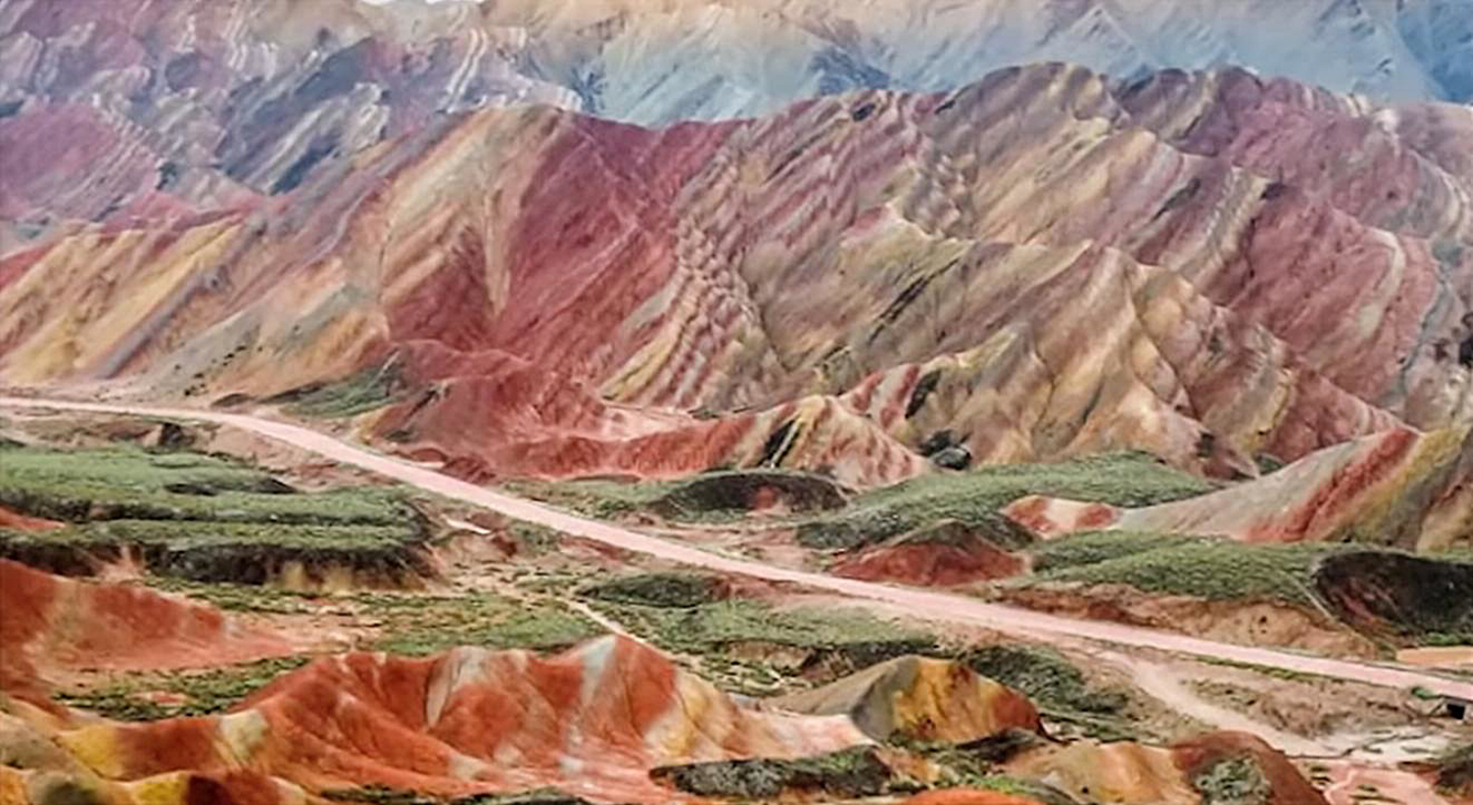 A question came up about the color and it seems that the ironcontent of the soil in these mountains is so high, that the groundactually gets rusty. China. 2025