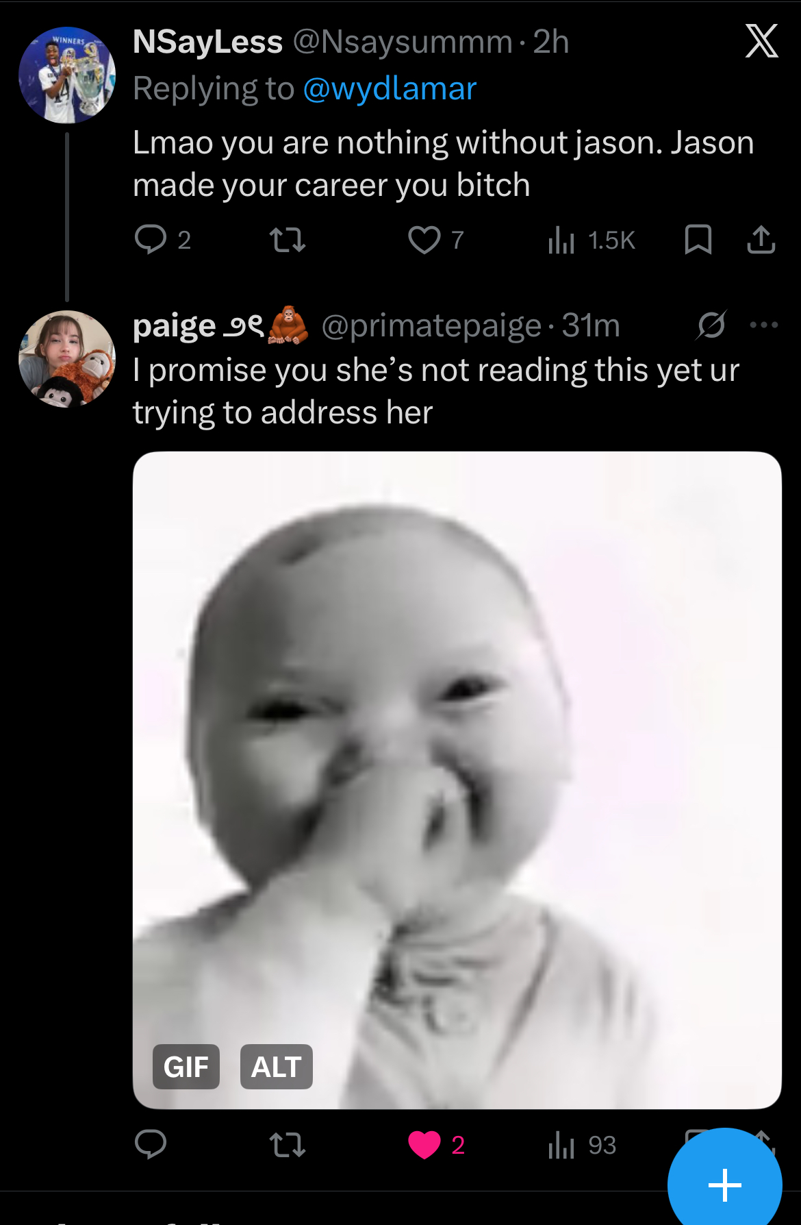 i mean that paige reply really does nothing but gas the tweet up more so idk the point. Their tweet isnt banging if jason's name isnt in it so they are going to keep doing it.>>946562062yh idk what paige is doing, not particularly a good use of her time