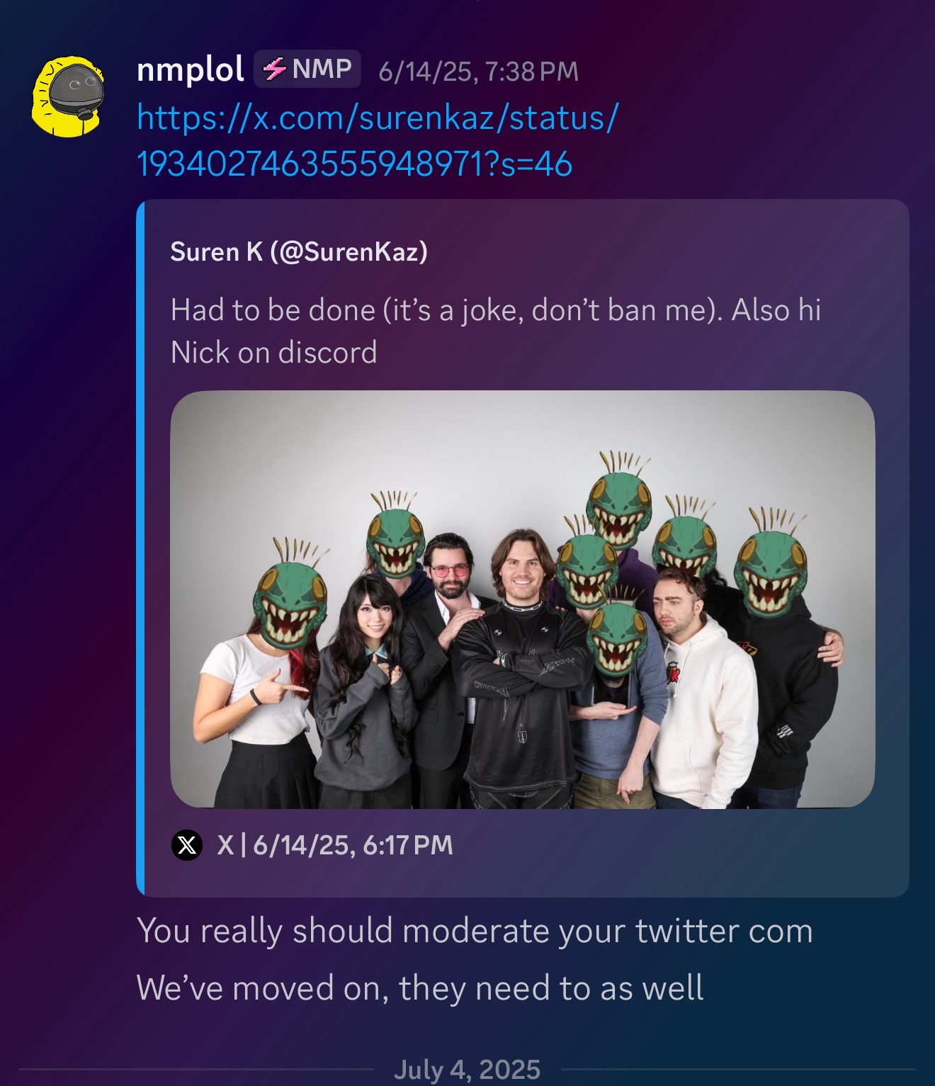 Lol shes sucha schizo baiter, if its a private party dont even mention it