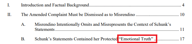 The Miz dick riders are real hung up on the "Emotional Truth" part of the filing and that's not even the main point of the filing, that's just a fall back for a predictable angle he'll take. It's literally saying even if it were false, which it isn't, he can't say emotional truth is defamation. You niggas need to learn to read, or well stop doing your selective reading.