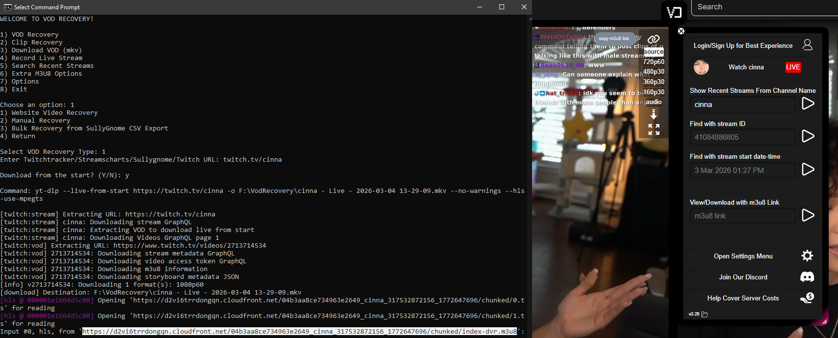 >>946602256for both: stream and VOD and for stream that doesn't have a VOD that both of your methods are useless, and for every resolution that some of your extensions wouldn't even have. Also for stream that just started.